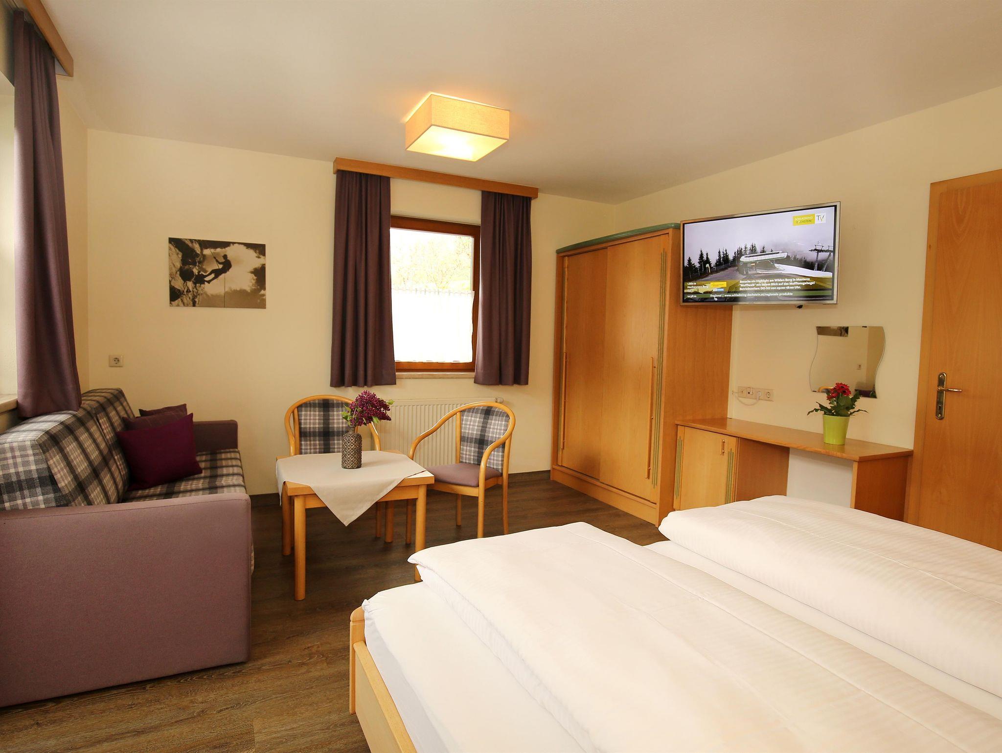 Bei uns im Haus Alexander wohnen Sie in hellen, großen Komfortzimmern, natürlich ausgestattet mit Dusche, WC, Kabel-TV, gratis W-LAN und einem Balkon, der ein wunderbares Panorama auf die Bergwelt von Schladming-Dachstein bietet. Natürlich können Sie dieses Panorama auch vom Balkon eines unserer geräumigen Appartements, die für bis zu 5 Personen eingerichtet sind, genießen. Auf Wunsch können wir Ihnen ein herzhaftes Frühstück zubereiten, damit der Morgen perfekt beginnt und an lauen Sommerabenden steht Ihnen unser Grill sehr gerne zur Verfügung und sorgt für einen entspannten Ausklang eines erlebnisreichen Tages in Schladming-Dachstein.