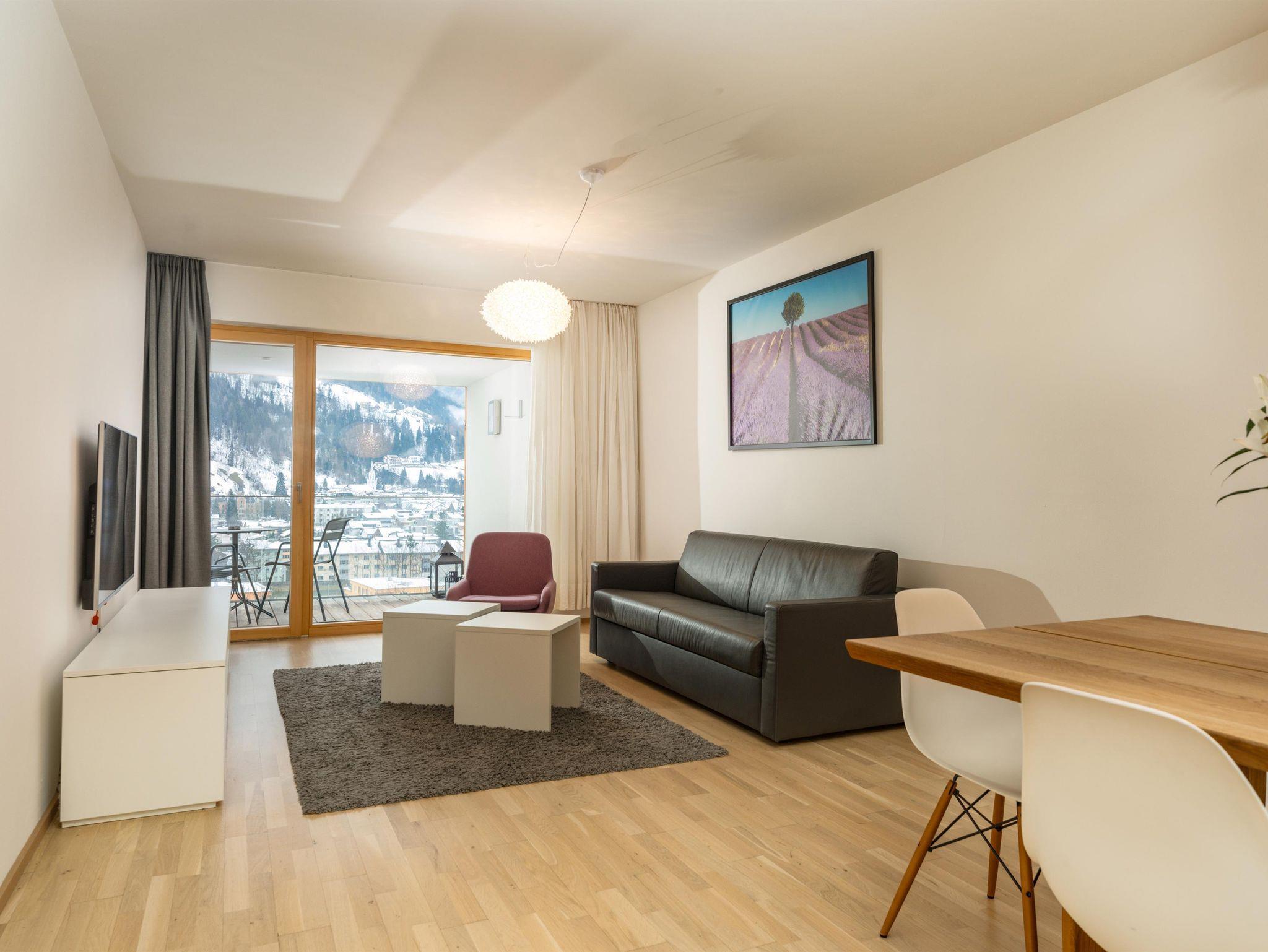3 miteinander verbunden Häuser 38 servicierte Appartements, von 40m² Studios, Appartements mit einem, zwei oder drei Schlafzimmern bis hin zu 130m² Penthäusern, herrlichen Ausblick und Top Ausstattung inklusive! Die hochwertige Grundausstattung der Appartements mit heimischen Materialen wie Holz, Stein und Glas vermitteln ein modernes Wohlfühlambiente mit viel Licht und Aussicht, - eine Symbiose aus purem Lebensgefühl und Kraftplatz an der Sonne. Komplett ausgestattete Designküchen, großzügige Wohnräume zum Teil mit offenem Kamin, moderne & stylische Möbel, kostenfreies WLAN, Kabel TV in allen Schlaf- und Wohnräumen sowie moderne und lichtdurchflutete Badezimmer, lassen für den Gast, der seine private Freiheit schätzt, keine Wünsche offen .