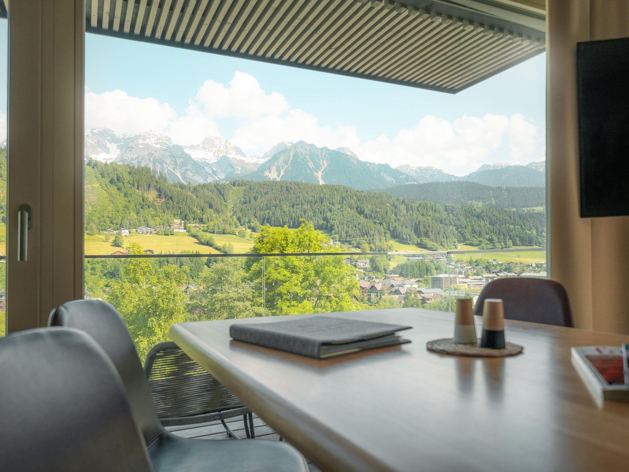 360 Grad patentierter garantierter Panoramablick auf den Dachstein , das Ennstal, nach Schladming und Rohrmoos! Alle Appartements verfügen über einen Balkon, eine Terrasse oder einen kleinen Garten, die XXL Terrassen mit Blick auf den Dachstein unserer TOPS und unseres LOFT sind einzigartig und für unsere Gäste unvergesslich!
