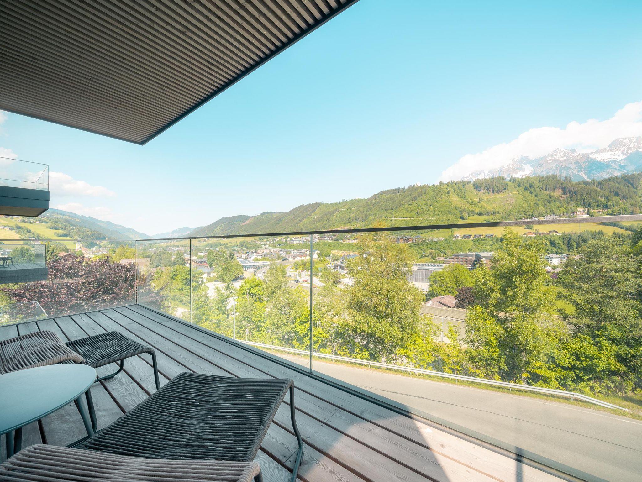 Balkon in Richtung Norden mit Dachsteinblick oder in Richtung nach Westen mit Blick ins Ennstal