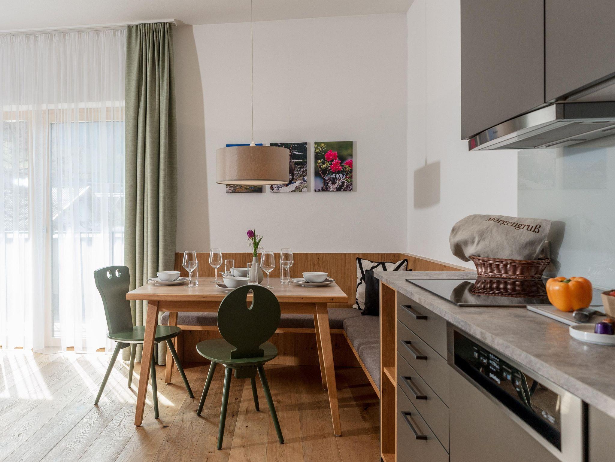 Jedes Studio ist mit einer voll ausgestatteten Küche inklusive Essecke ausgestattet, ergänzt durch einen komfortablen Wohnbereich mit Kabel-TV. Der private Balkon lädt ein, die frische Bergluft zu genießen und das alpine Panorama zu erleben.