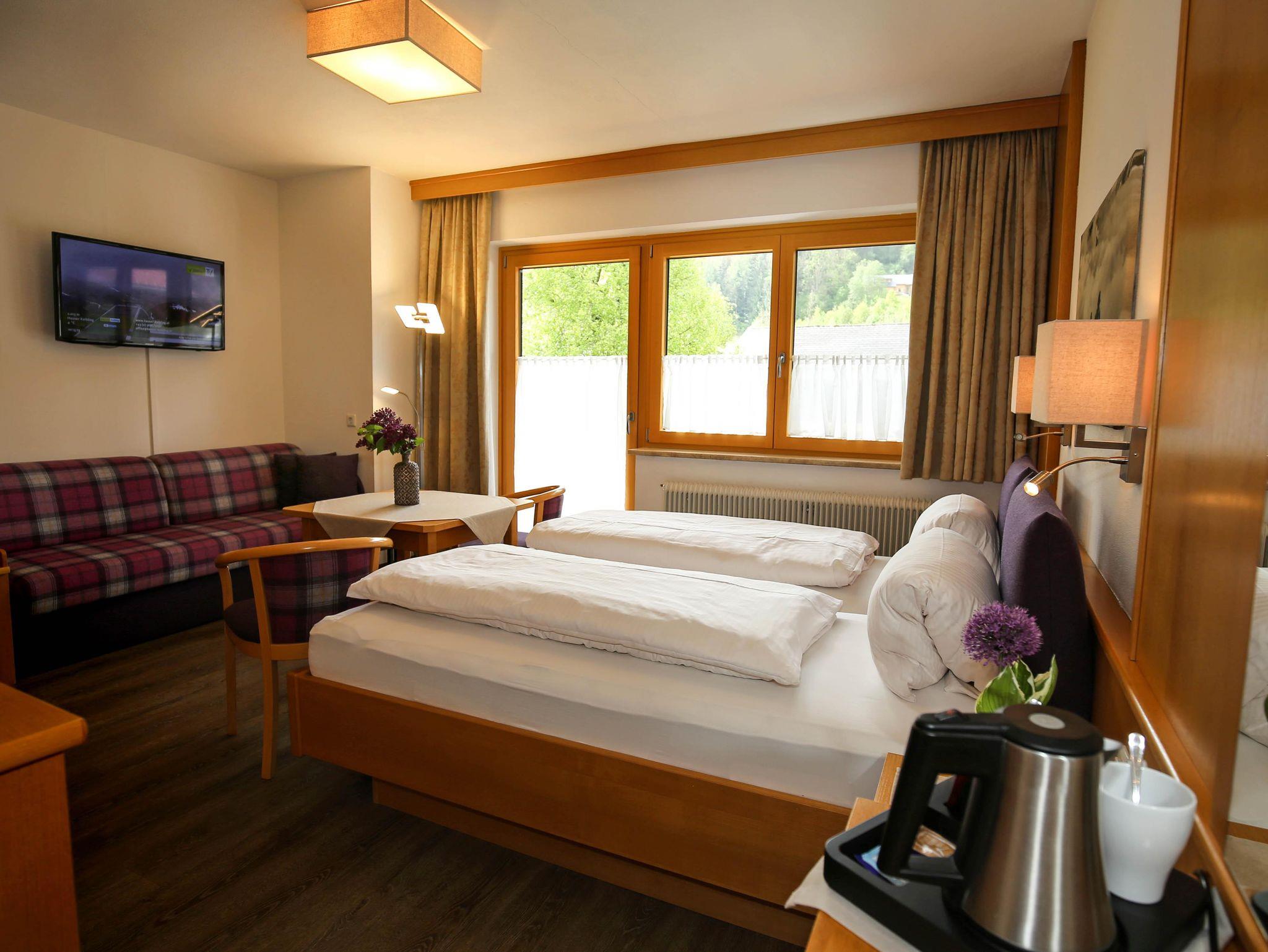 Sie wohnen in schönen, hellen Doppelzimmern mit Sitzgruppe, Dusche/WC, Flatscreen, Safe, Teestation, gratis W-LAN sowie Balkon mit Gartenmöbel und herrlichen Blick auf unsere Umgebung.