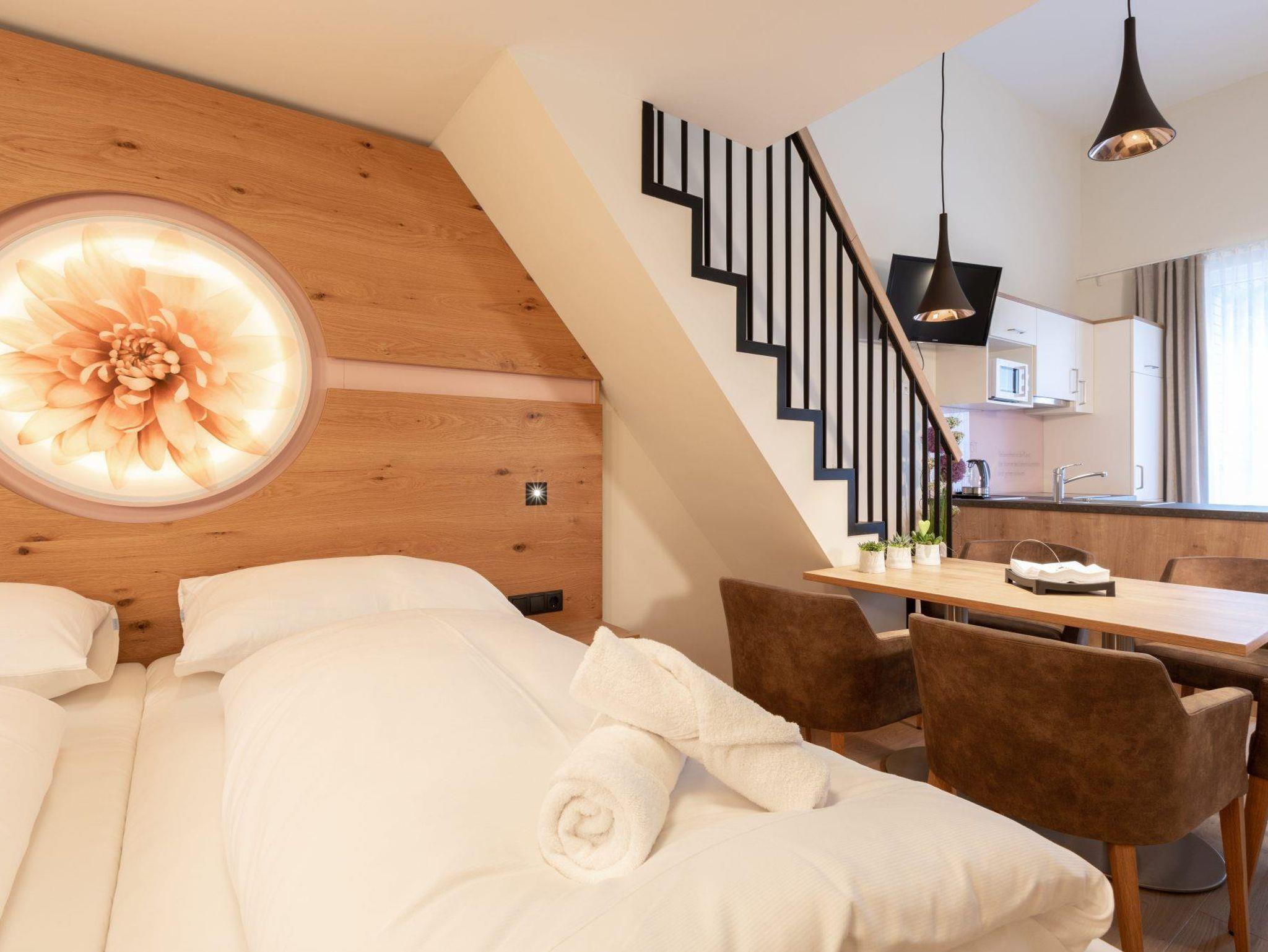 In der Kategorie Loft Family mit Galerie stehen Ihnen 2 neue Appartements im Loft Style mit offener Galerie, ideal für Familien, mit gewohnt hochwertiger Einrichtung, zur Verfügung - hier kann man die Seele baumeln lassen und Gelassenheit leben.