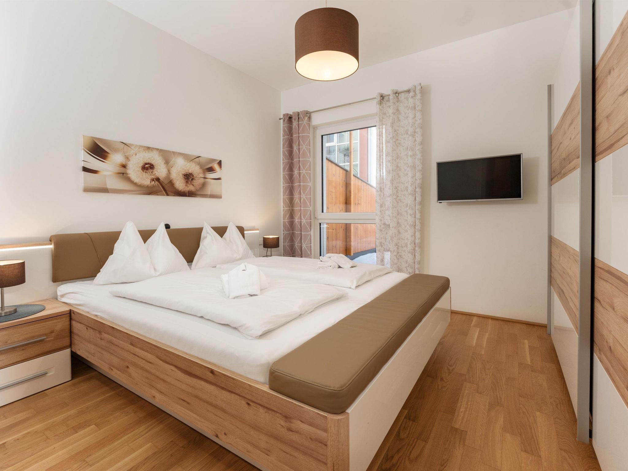 Top 4: 87m² App. im 1. Obergeschoss für 4-6 Personen, großzügiger Wohnraum mit komplett und hochwertig ausgestatteter Küche, Esstisch, Schlafsofa für 2 Personen und TV, 10m² Balkon mit Balkonmöbel und tollem Ausblick auf den Planai Zielhang, zwei separate Schlafzimmer mit Doppelbett, ein en-suite Badezimmer mit Badewanne, Waschtisch sowie ein separates Badezimmer mit Regendusche und Waschtisch, eine separate Toilette ist vorhanden. Skibox mit Skischuhheizung und 1 Tiefgaragenparkplatz.