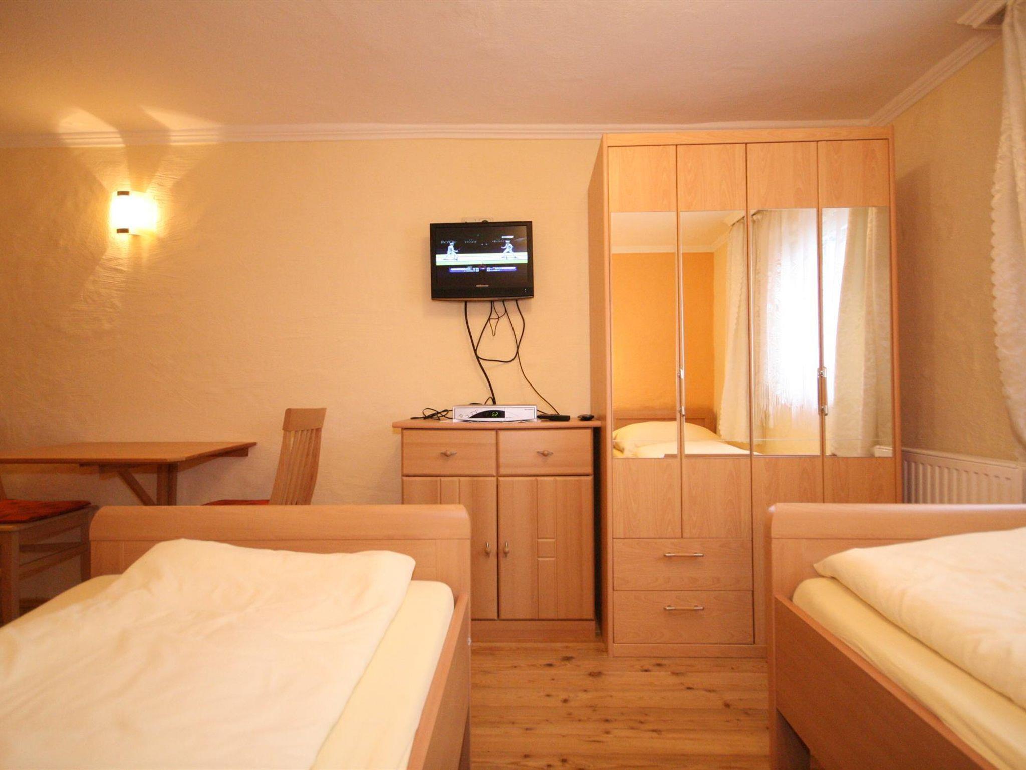 Im Wohn/Schlafraum finden Sie einen Esstisch und einen Fernseher mit Sat-TV-Anschluss.