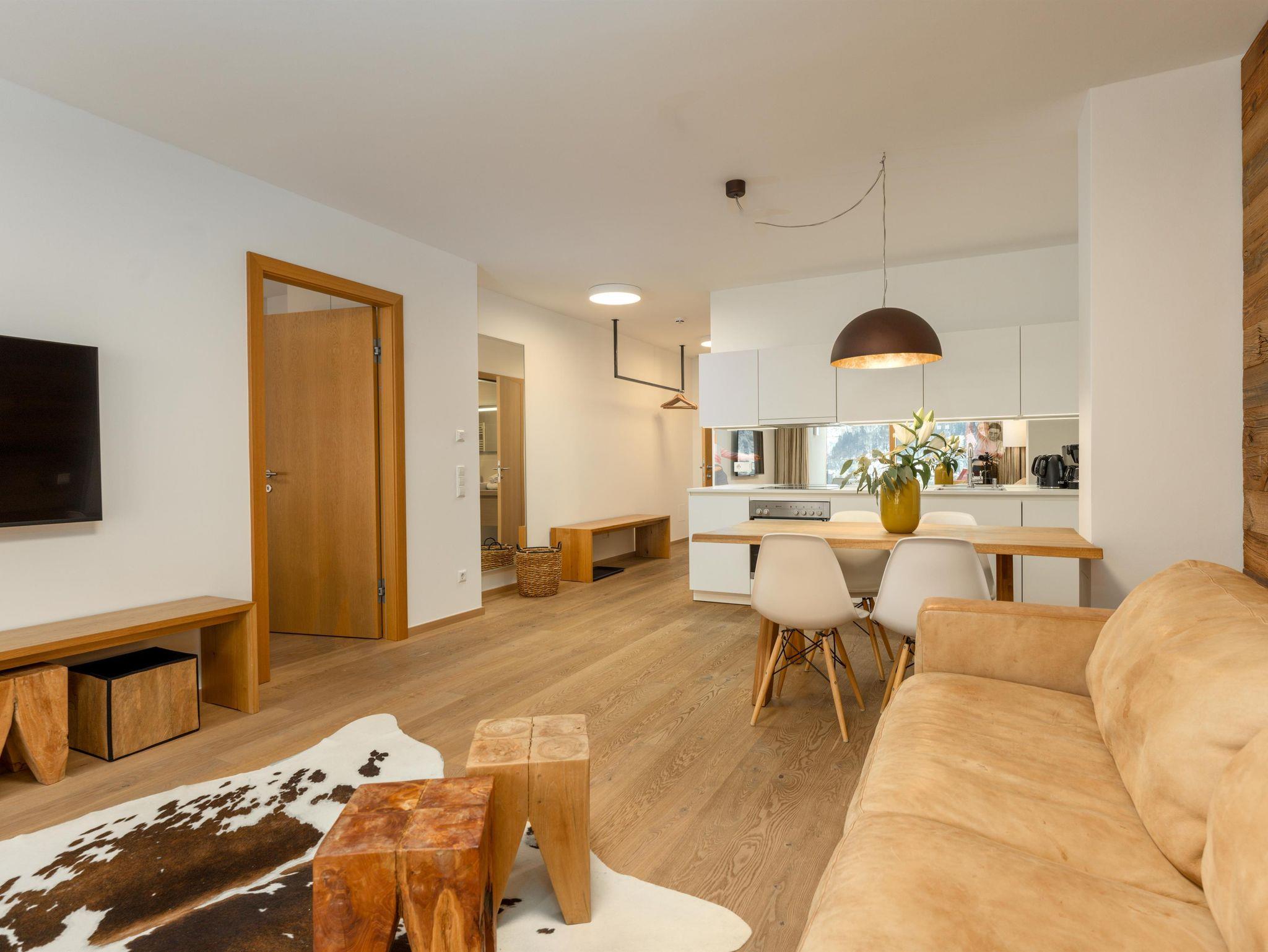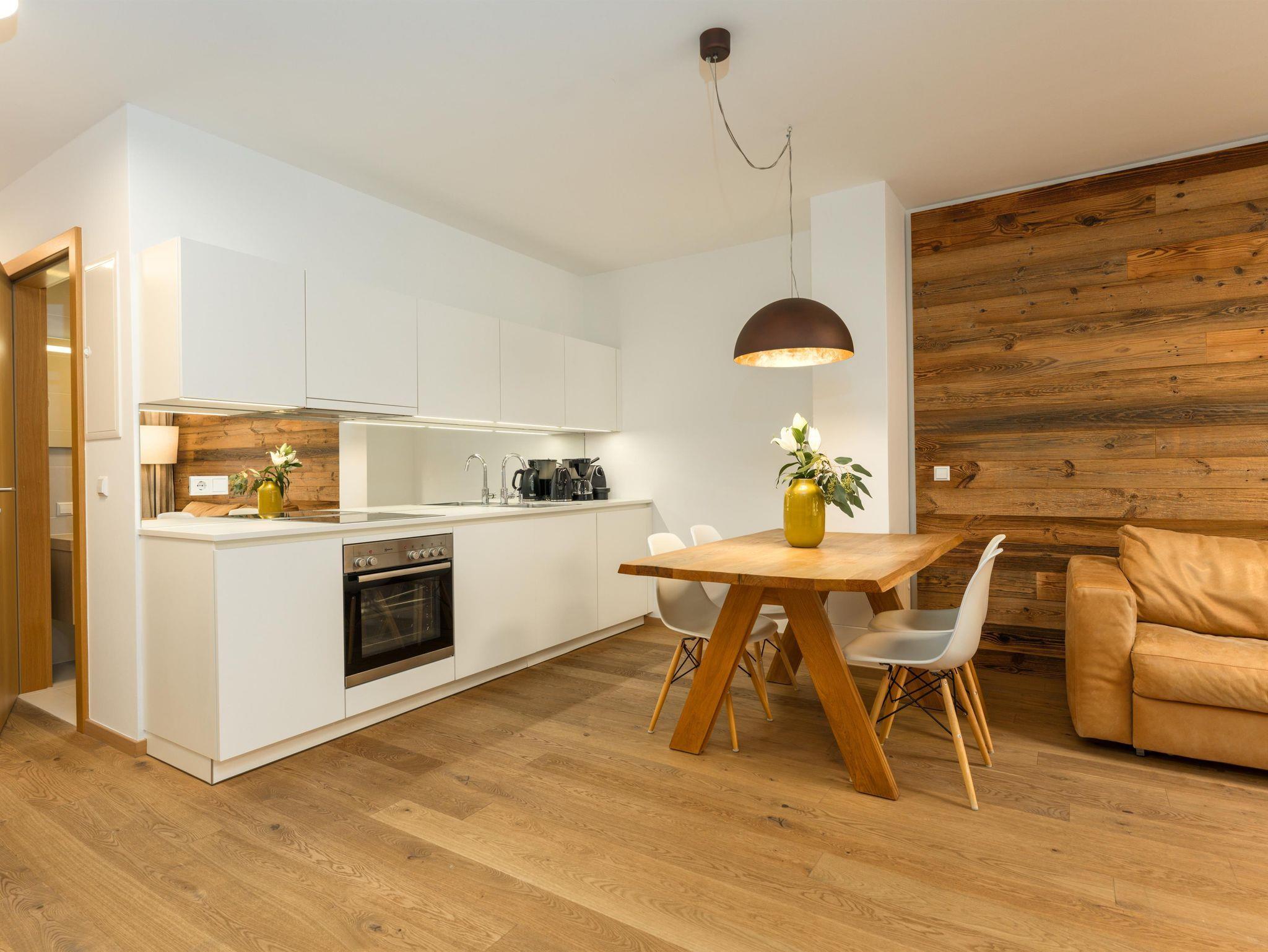 3 miteinander verbunden Häuser 38 servicierte Appartements, von 40m² Studios, Appartements mit einem, zwei oder drei Schlafzimmern bis hin zu 130m² Penthäusern, herrlichen Ausblick und Top Ausstattung inklusive! Die hochwertige Grundausstattung der Appartements mit heimischen Materialen wie Holz, Stein und Glas vermitteln ein modernes Wohlfühlambiente mit viel Licht und Aussicht, - eine Symbiose aus purem Lebensgefühl und Kraftplatz an der Sonne. Komplett ausgestattete Designküchen, großzügige Wohnräume zum Teil mit offenem Kamin, moderne & stylische Möbel, kostenfreies WLAN, Kabel TV in allen Schlaf- und Wohnräumen sowie moderne und lichtdurchflutete Badezimmer, lassen für den Gast, der seine private Freiheit schätzt, keine Wünsche offen .