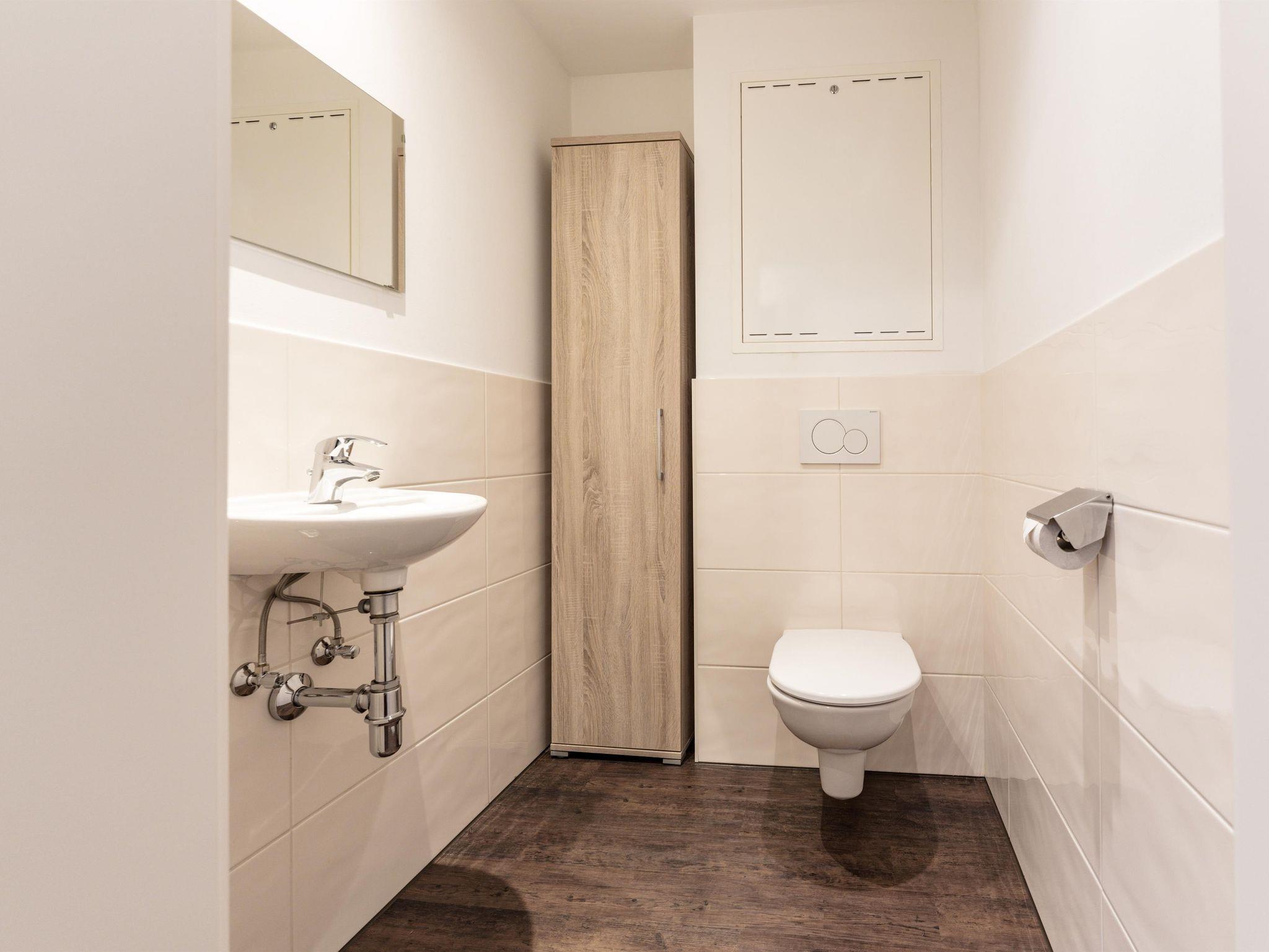 - 1 Bad mit Doppelwaschtisch, Badewanne und Dusche, WC