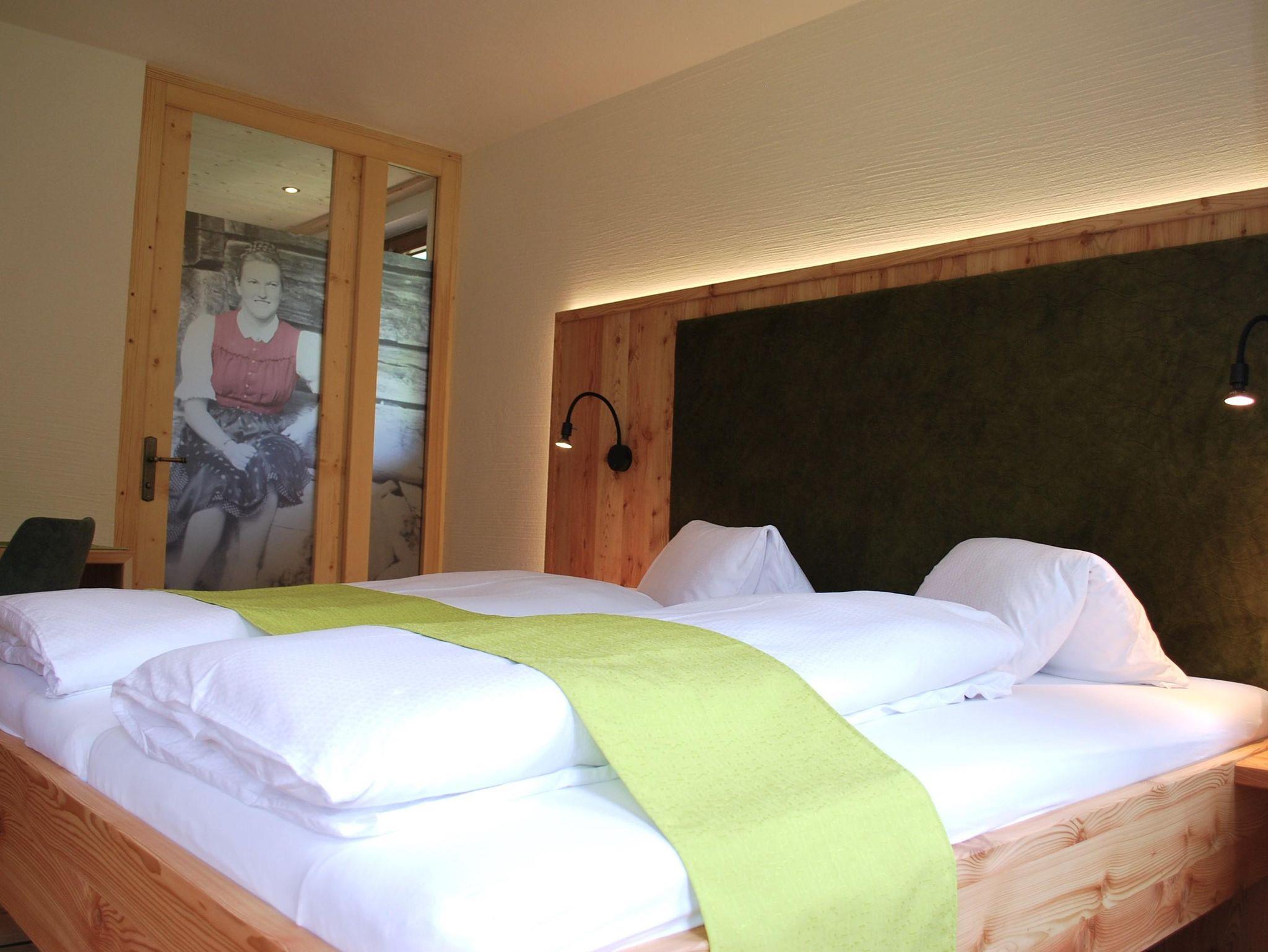 Geräumiges Doppelbettzimmer mit einem Vorraum und Dusche mit WC.