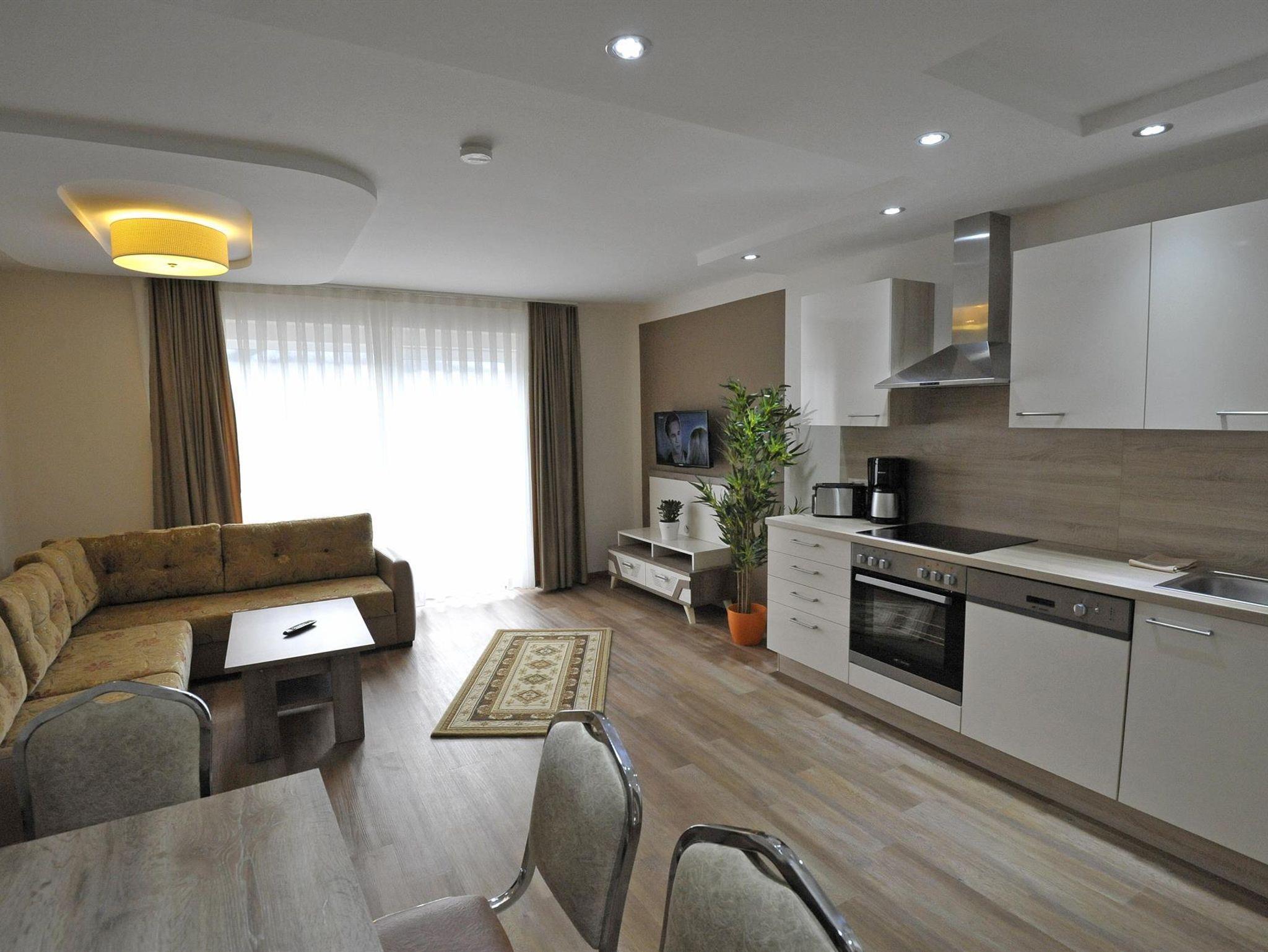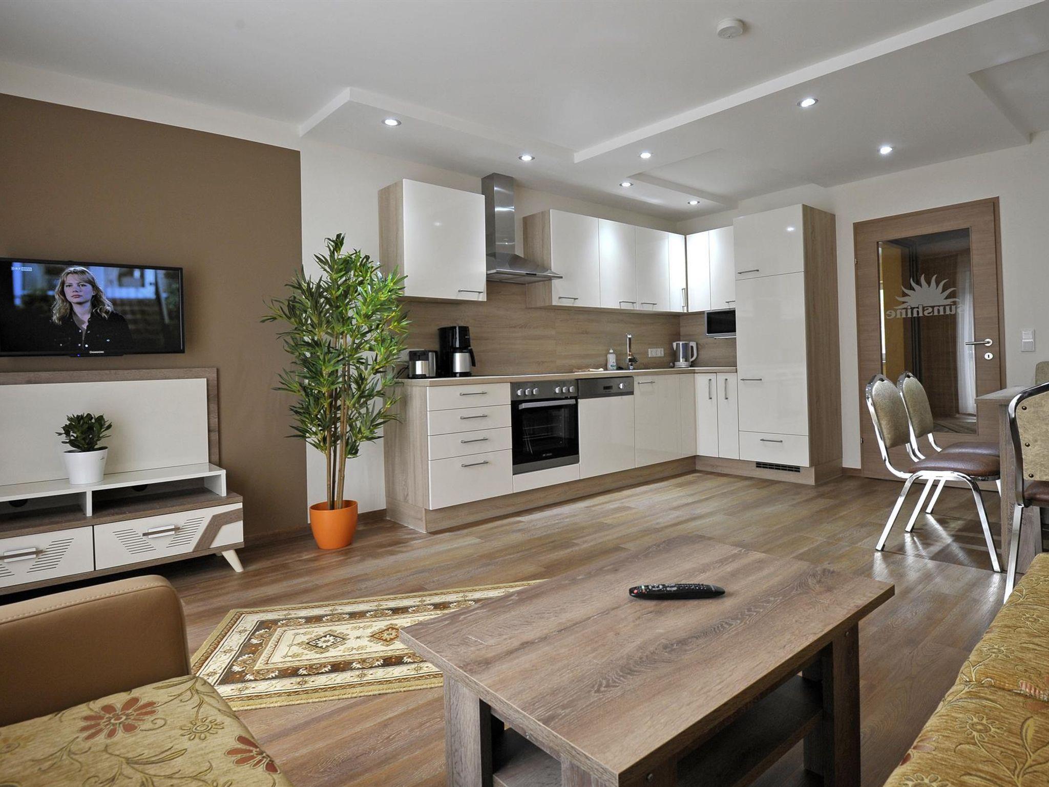 NEU ERBAUTE, MODERNE APPARTEMENTS IN RUHIGER LAGE Unser Appartementhaus Sunshine befindet sich ca 2 km von Hauptplatz entfernt . Die neu erbauten und modernen Wohnungen sind komfortabel eingerichtet mit einem offen gestalteten Wohn- und Essbereich.