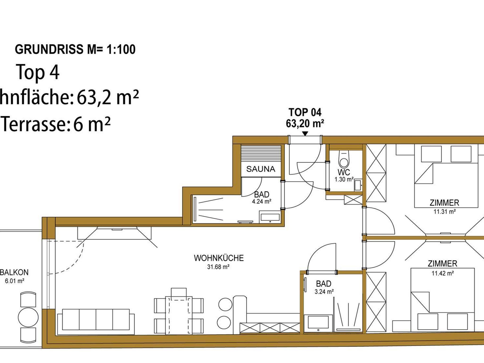 Für 4-6 Personen, 63,2 m² Wohnfläche, 1. OG