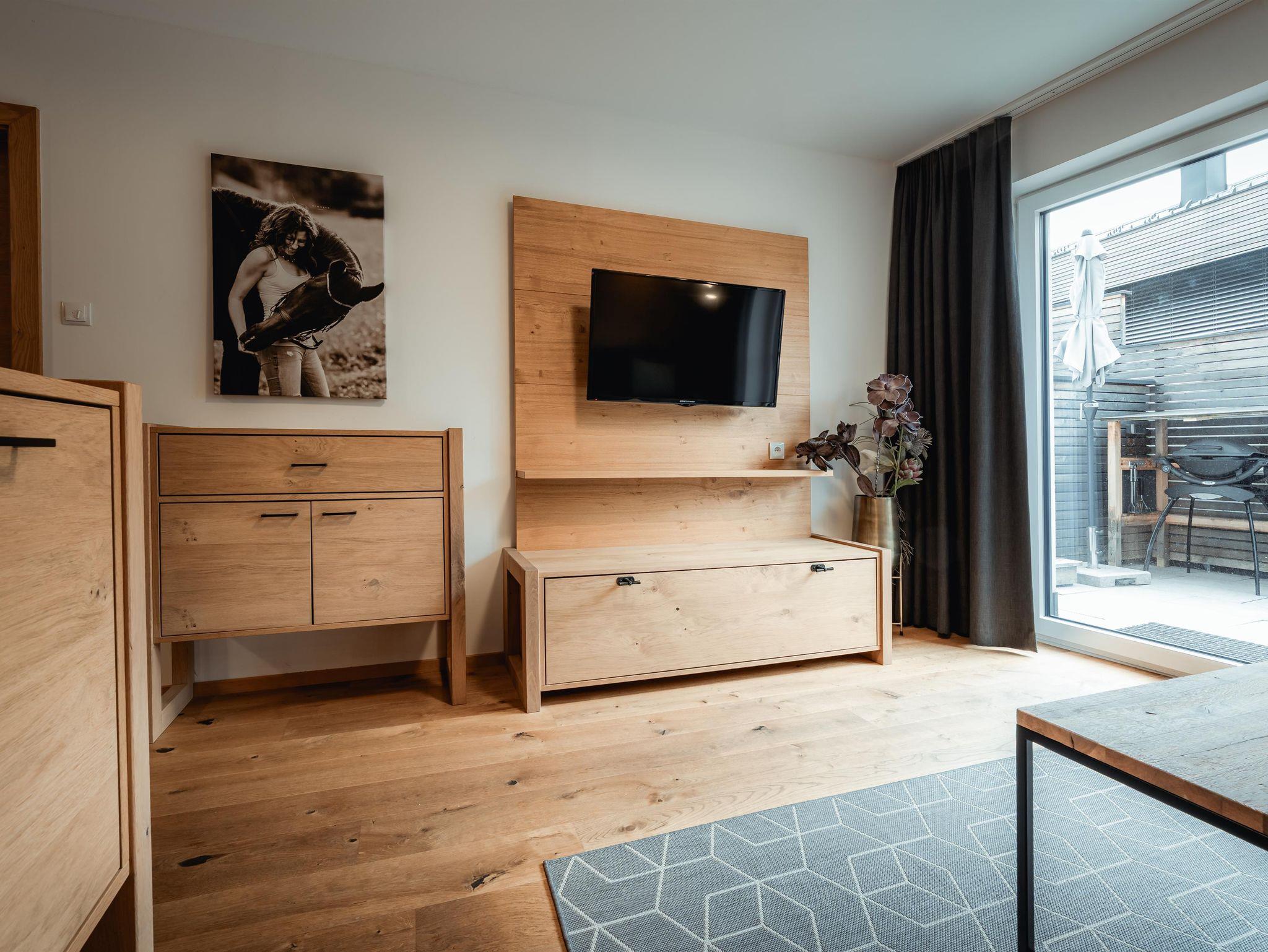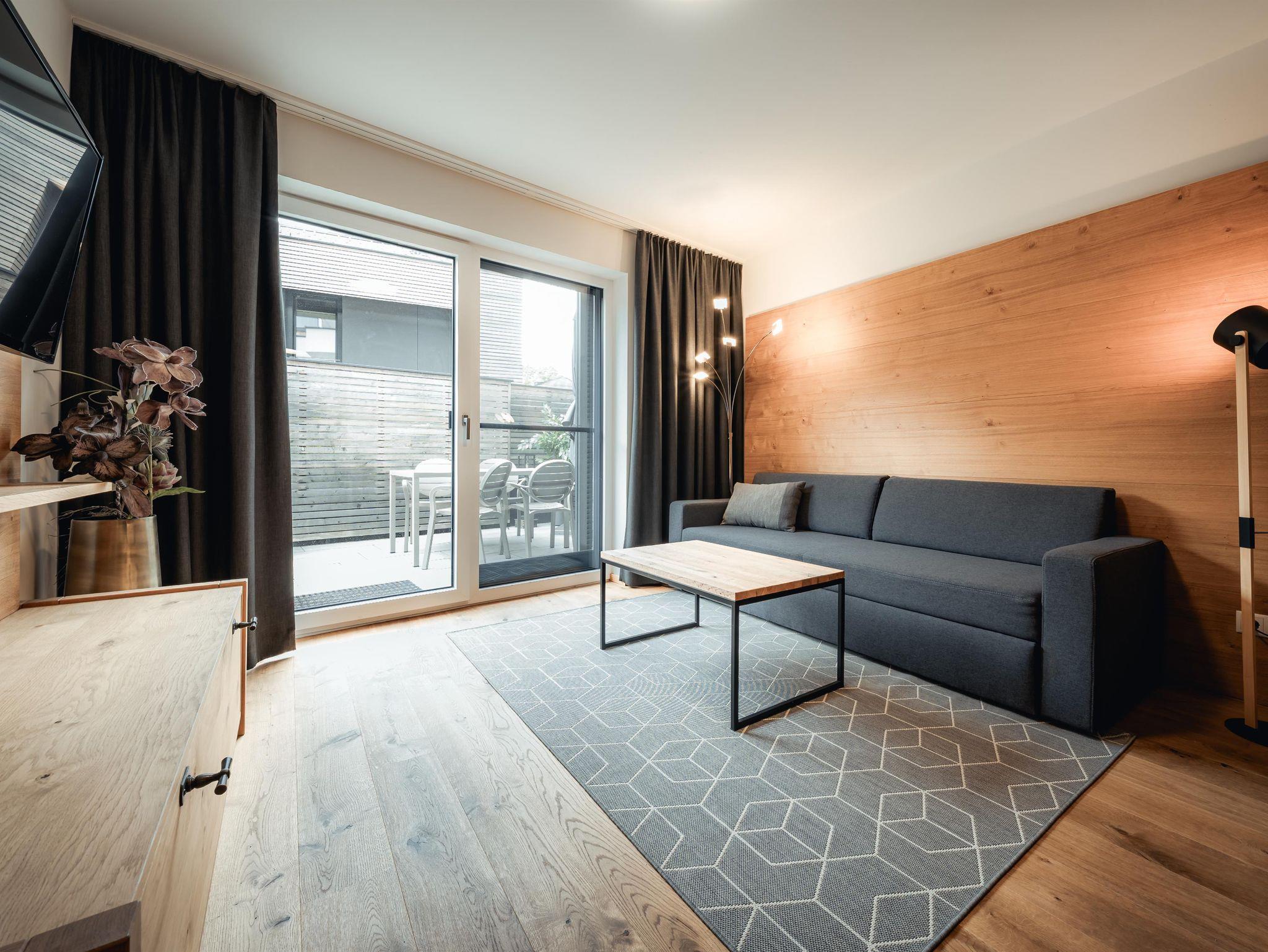 Eben alles was man so braucht. By the way: Das Auto kannst du in der Tiefgarage lassen. Servus im Gustav – 8 Appartements von Smart bis Sky – außerdem mit dabei: Private Sauna im Appartement, eigene Terrasse oder Balkon Top 8 hat keine Balkon, komplett ausgestattete Küchen mit allem PiPaPo, 1-2 Schlafzimmer und Bäder sowie eine Aussicht nach Westen auf die Hochwurzen und das eine oder andere Chi-Chi.