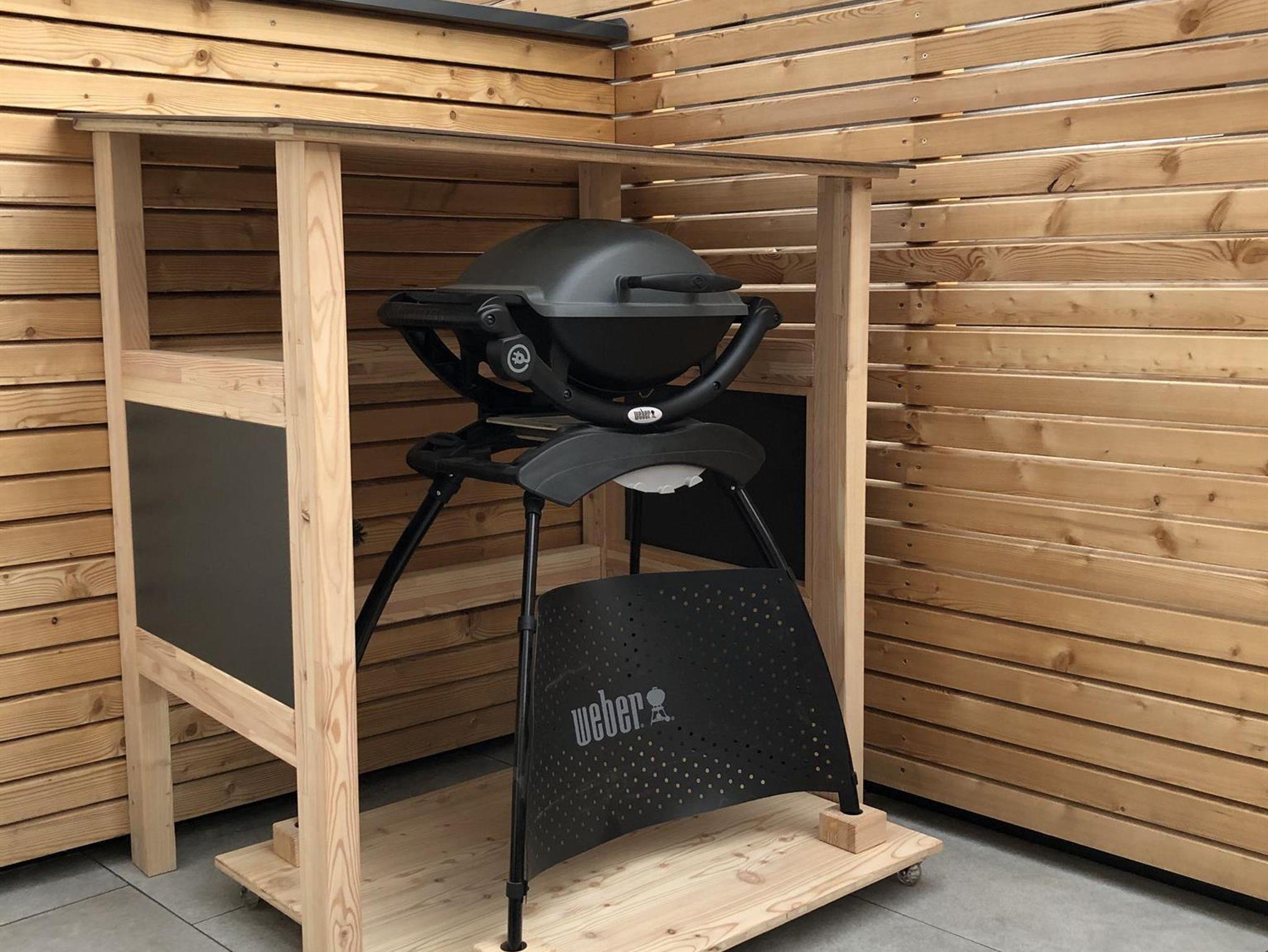 Weber Elektro-Grill auf der Terrasse vorhanden.