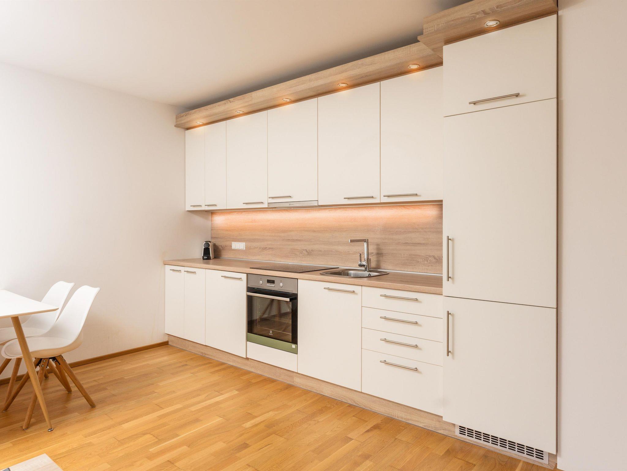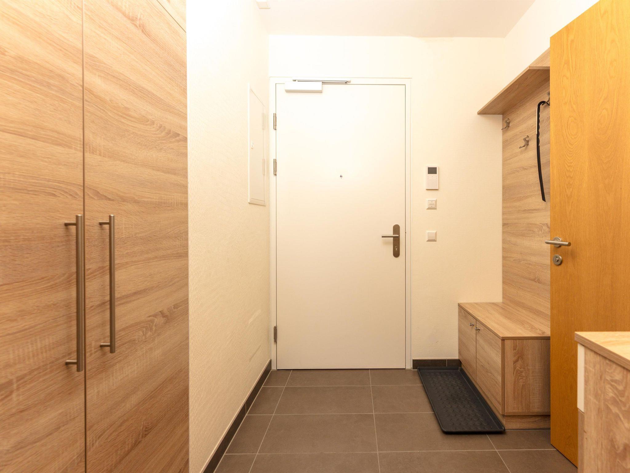 Zu dem Appartement gehört eine Loggia, ausgerichtet nach Süden, die vom Wohnraum sowie von einem Schlafzimmer aus zugänglich ist. Kostenfreies WLAN & Kabel TV lassen für den Gast keine Wünsche offen