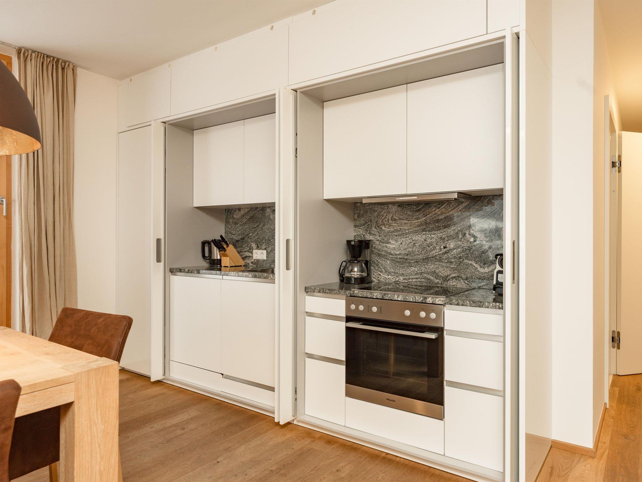 3 miteinander verbunden Häuser 38 servicierte Appartements, von 40m² Studios, Appartements mit einem, zwei oder drei Schlafzimmern bis hin zu 130m² Penthäusern, herrlichen Ausblick und Top Ausstattung inklusive! Die hochwertige Grundausstattung der Appartements mit heimischen Materialen wie Holz, Stein und Glas vermitteln ein modernes Wohlfühlambiente mit viel Licht und Aussicht, - eine Symbiose aus purem Lebensgefühl und Kraftplatz an der Sonne. Komplett ausgestattete Designküchen, großzügige Wohnräume zum Teil mit offenem Kamin, moderne & stylische Möbel, kostenfreies WLAN, Kabel TV in allen Schlaf- und Wohnräumen sowie moderne und lichtdurchflutete Badezimmer, lassen für den Gast, der seine private Freiheit schätzt, keine Wünsche offen .