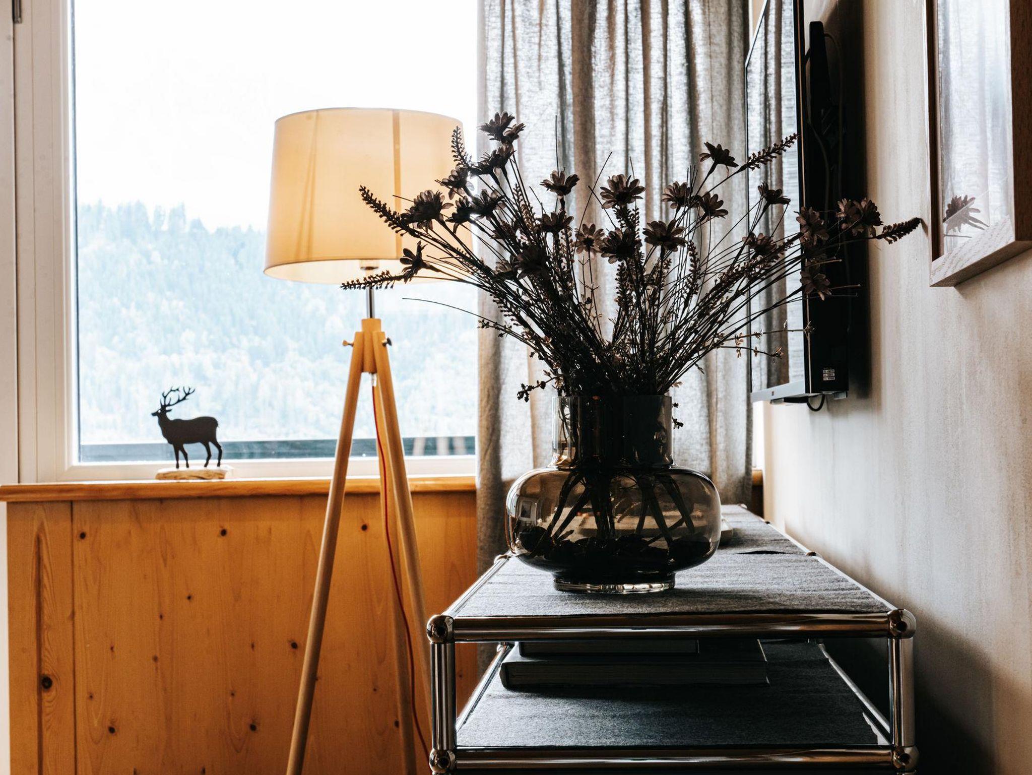 Ein echter Blickfang ist die großzügige Fensterfront, die für viel Licht sorgt. Sie verbindet harmonisch den Innenraum mit der Natur draußen und verleiht der Wohnung eine einladende, wohltuende Atmosphäre.