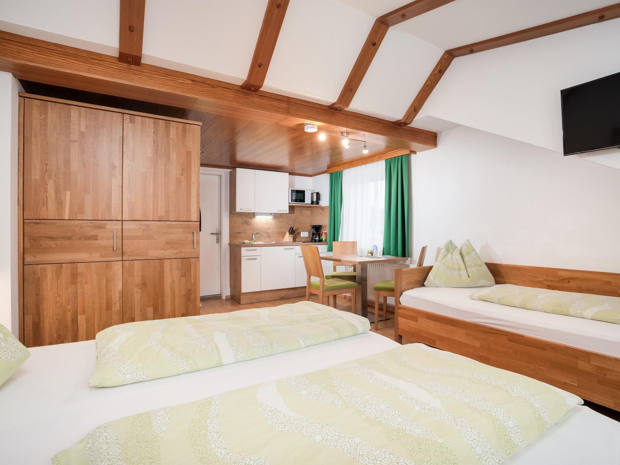 Unsere 6 neu renovierten Apartments befinden sich im 1., 2. und 3. Stockwerk (jeweils zwei Apartments). Das Haus verfügt über einen Lift. Voll ausgestattete Küchen, zwei separate Schlafzimmer sowie ein Badezimmer bieten die Apartments Top 7 bis Top 11. Das Top 12 ist ein Einraumapartment mit Badezimmer und kann mit Top 11 verbunden werden.