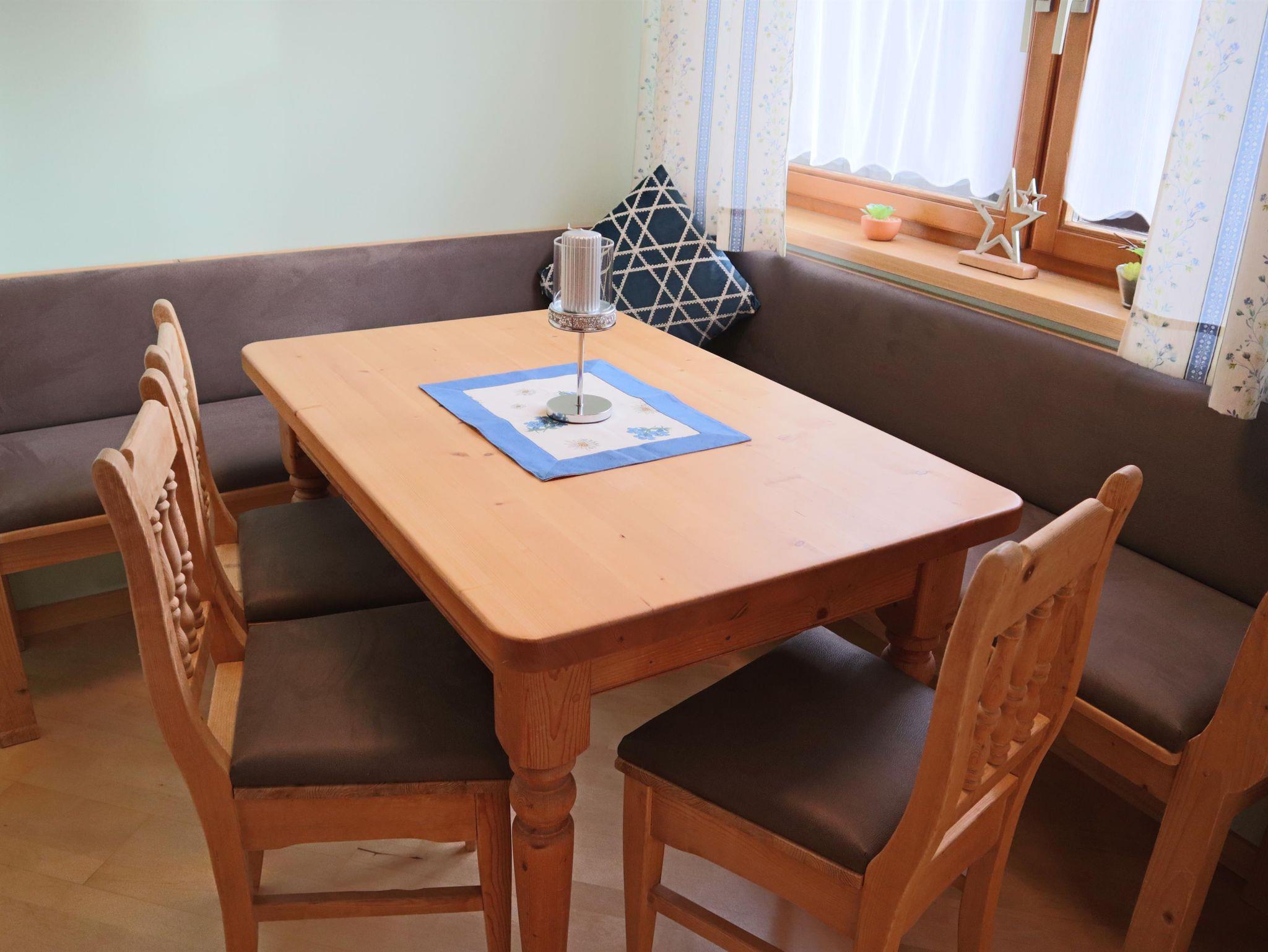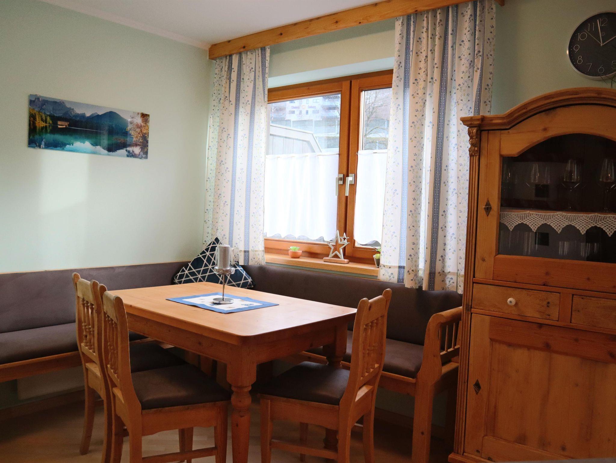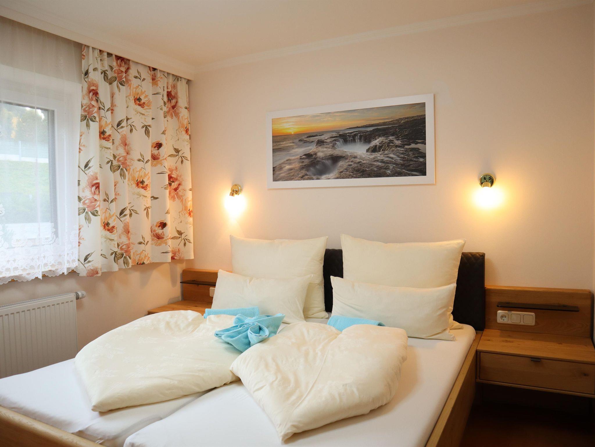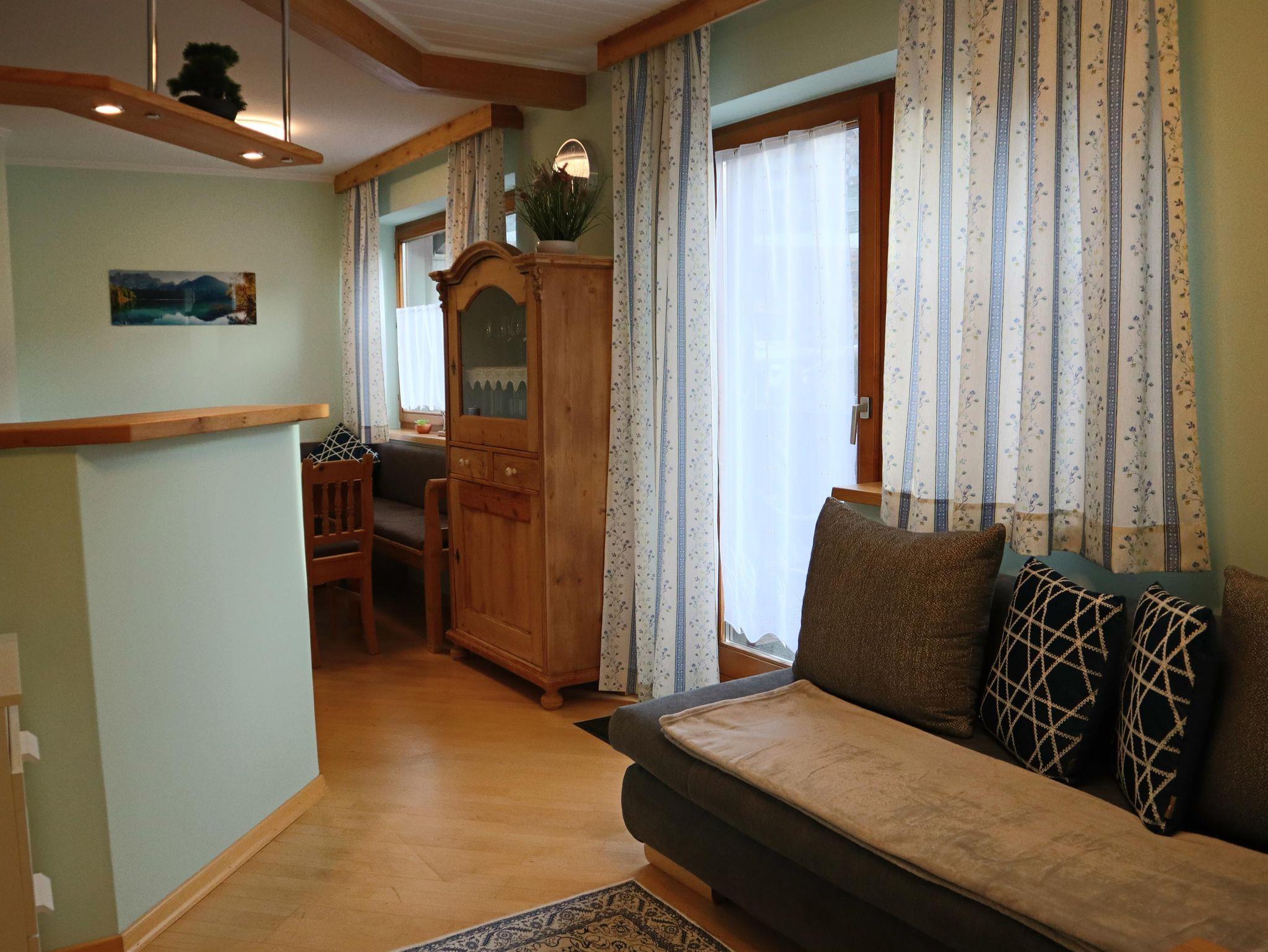 Das Appartement Edelweiß bietet Platz für 1 bis 4 Personen. Es verfügt über 1 Schlafzimmer mit einem Doppelbett und einem Kleiderschrank. In der Wohnküche befinden sich