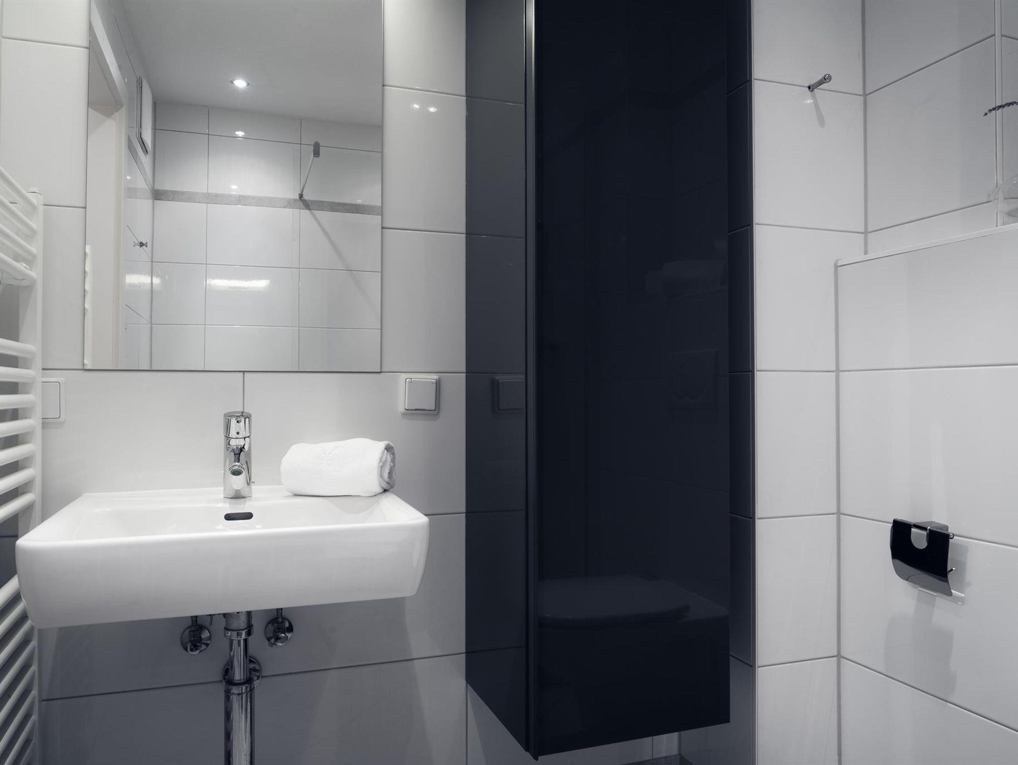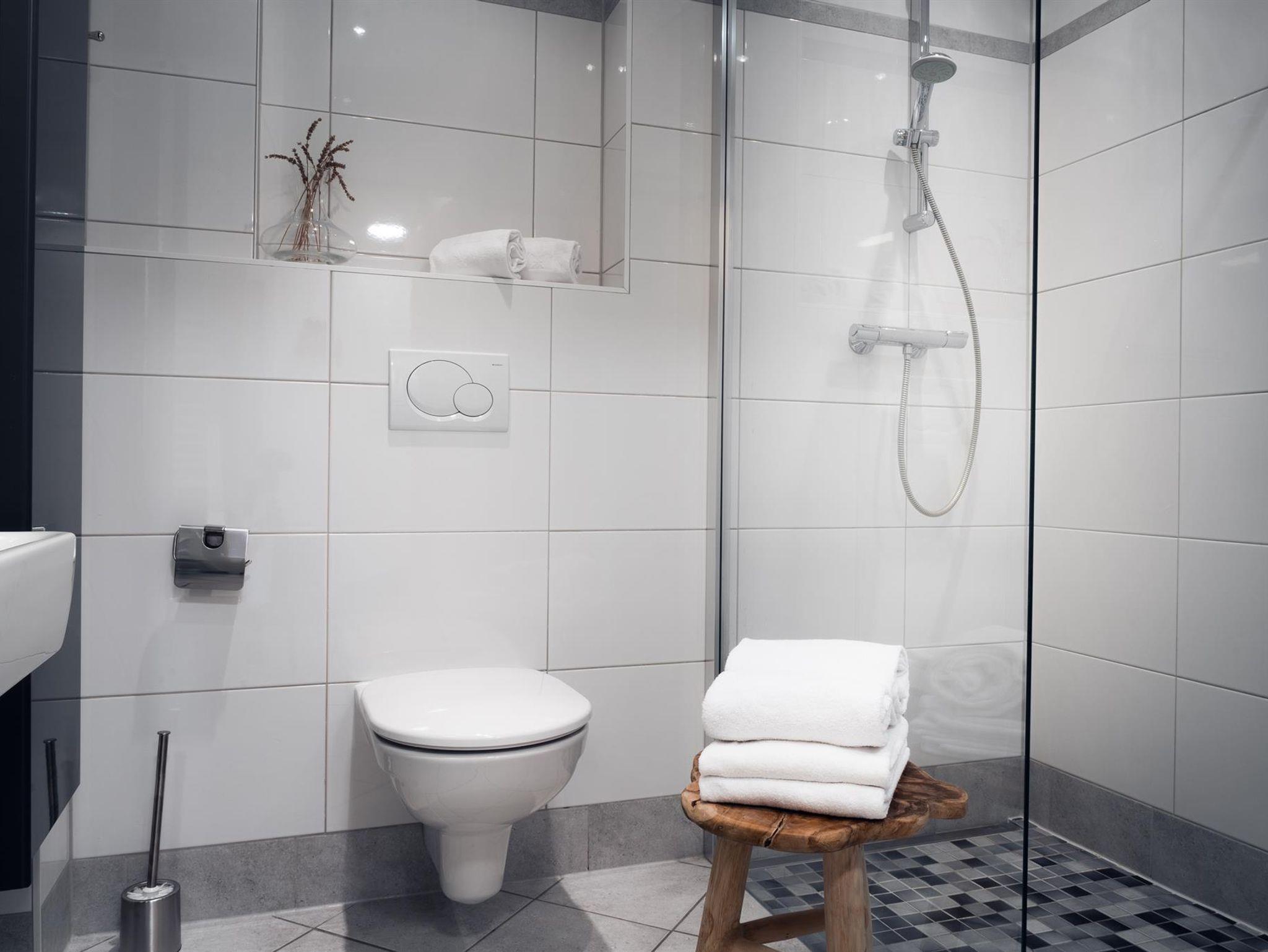 - 1 Badezimmer mit Dusche, Waschtisch und WC