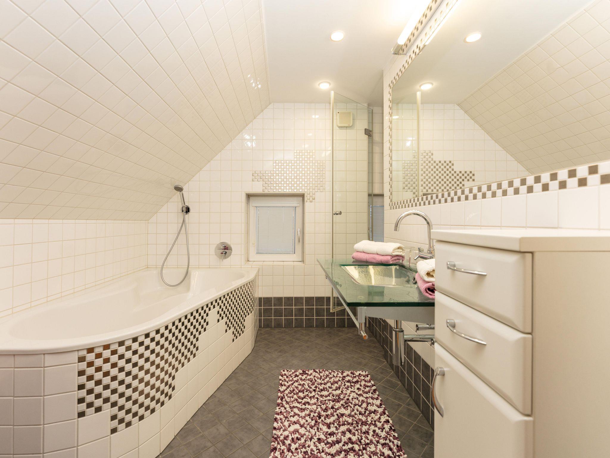 - 1 Badezimmer mit Dusche und Badewanne sowie ein separates WC