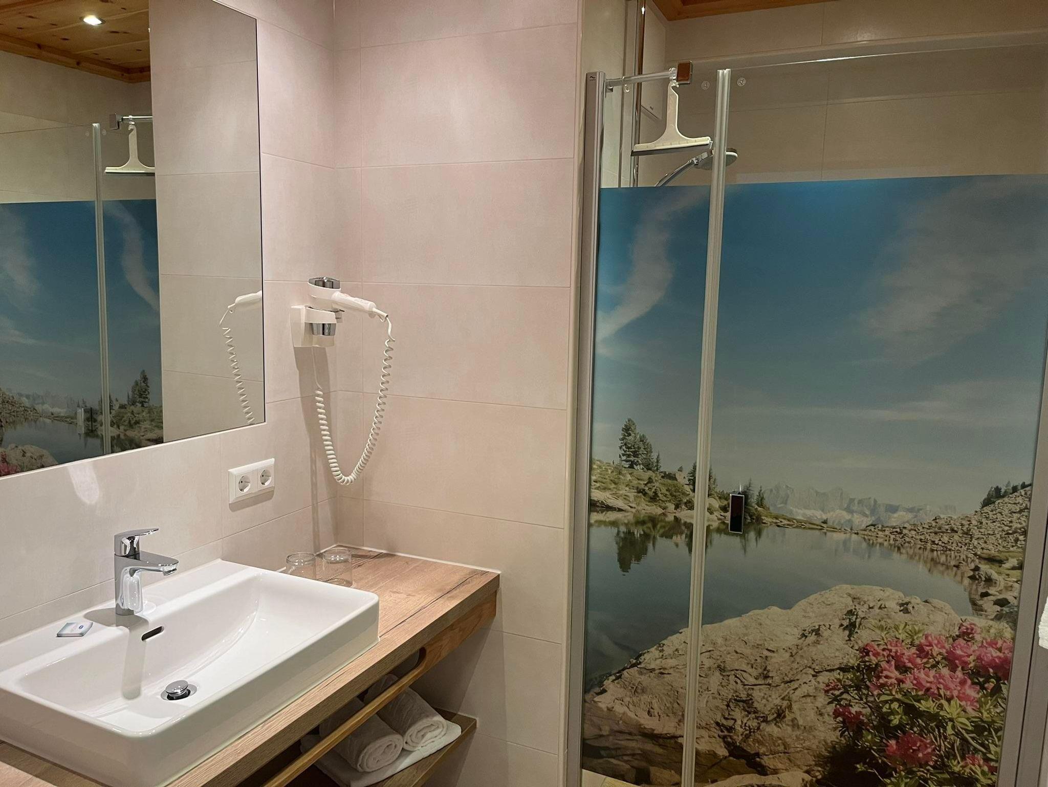 Unsere Zimmer sind mit individuell gefertigten Vollholzmöbeln und gemütlichem Wohnbereich, sowie Balkon, DU/WC getrennt, TV, Balkon, gratis WLAN und Safe ausgestattet