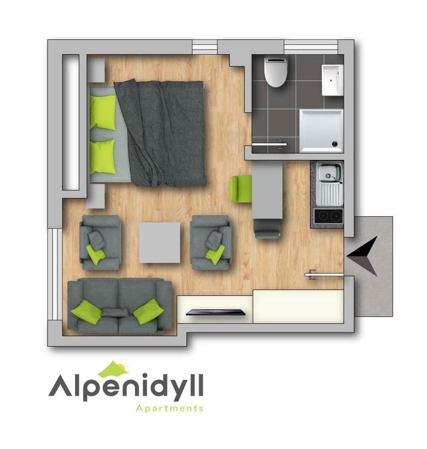 Herzlich willkommen in der Ferienwohnung City Life 6 by Alpenidyll Apartments in sehr zentraler Lage in Schladming. Das Studio verfügt über einen Sitzbereich mit einem Sofa, eine voll ausgestattete Küchenzeile und einen Essbereich.