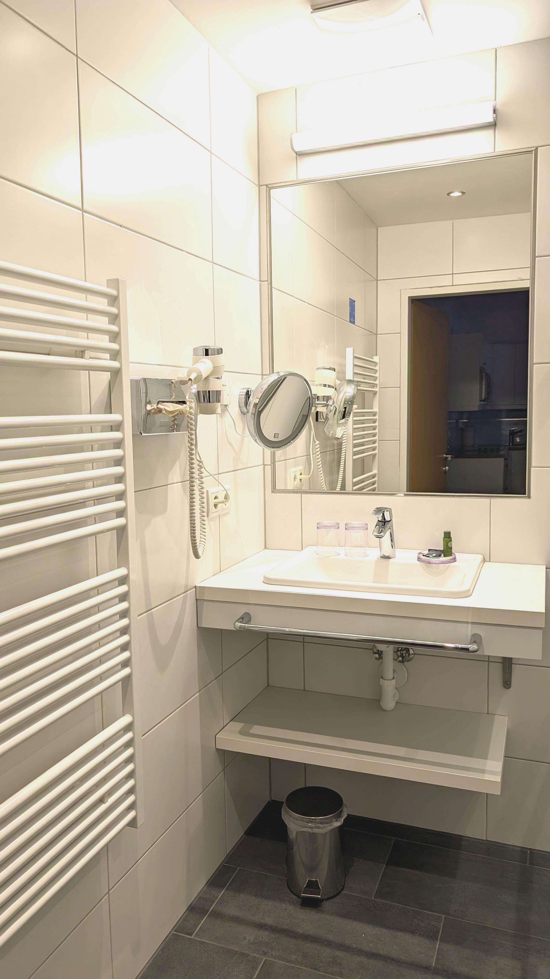 Komfortfaciliteter på badeværelset (hårtørrer, shampoo, hårbalsam, håndsæbe og brusegel)