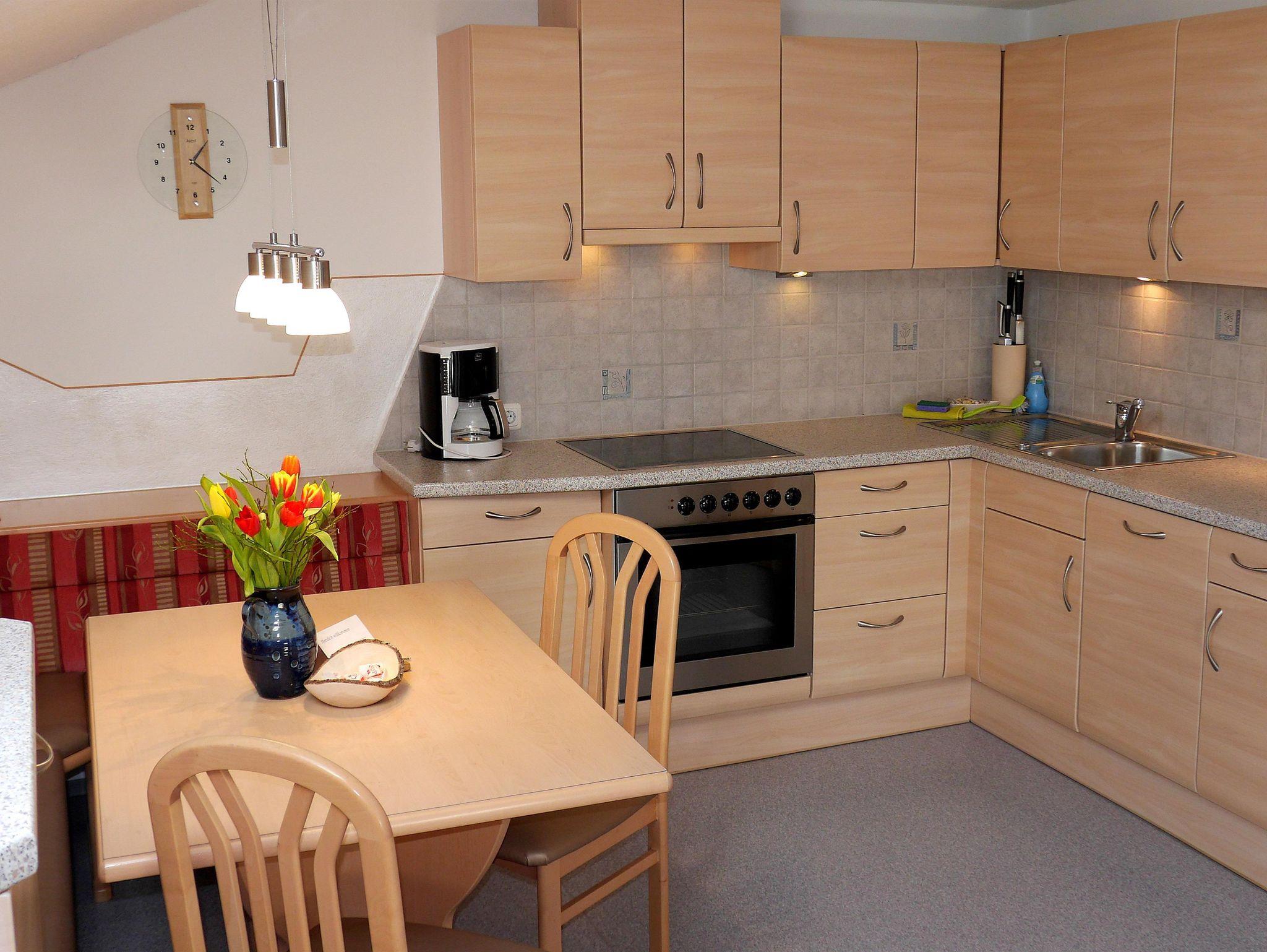 Wohnung für 2-5 Personen: 1 Dreibettzimmer, 1 Bad/WC, 1 große Wohnküche mit Geschirrspüler, Radio, SAT-TV und einer Schlafgelegenheit für 2 Personen - Balkon mit herlichem Bergpanorama.