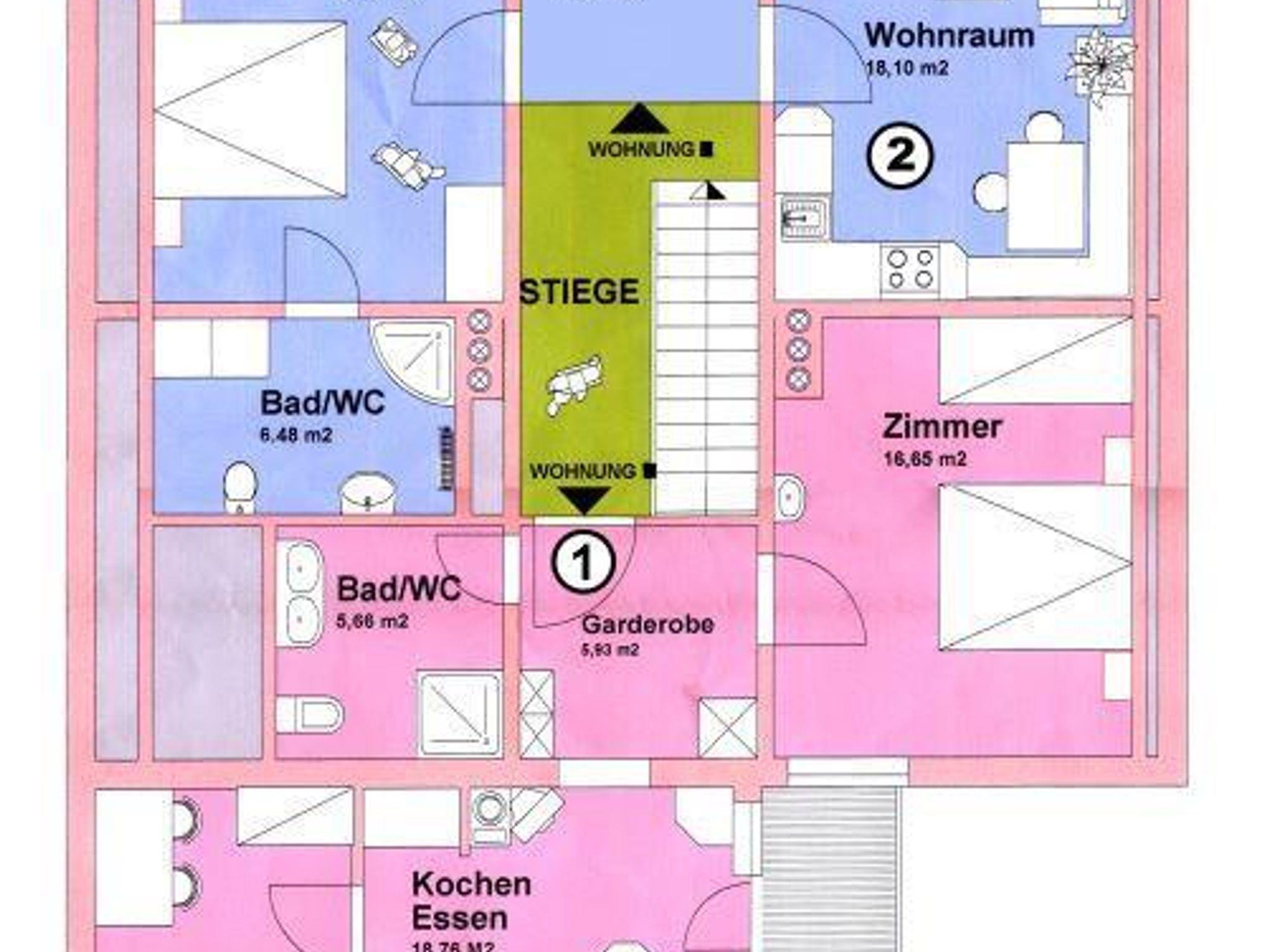Ferienhof Rindler, WOHNUNG 2/2 Schlafräume/Dusche, WC
