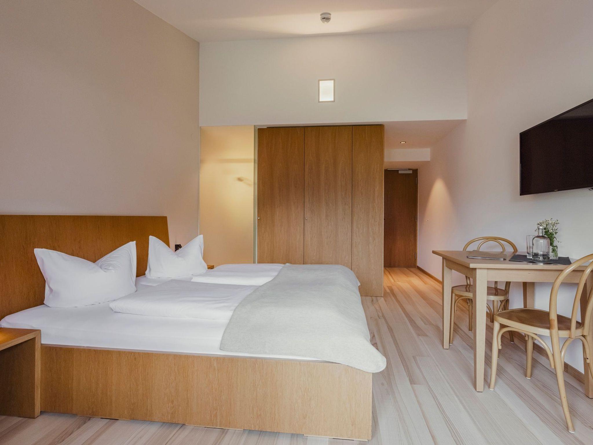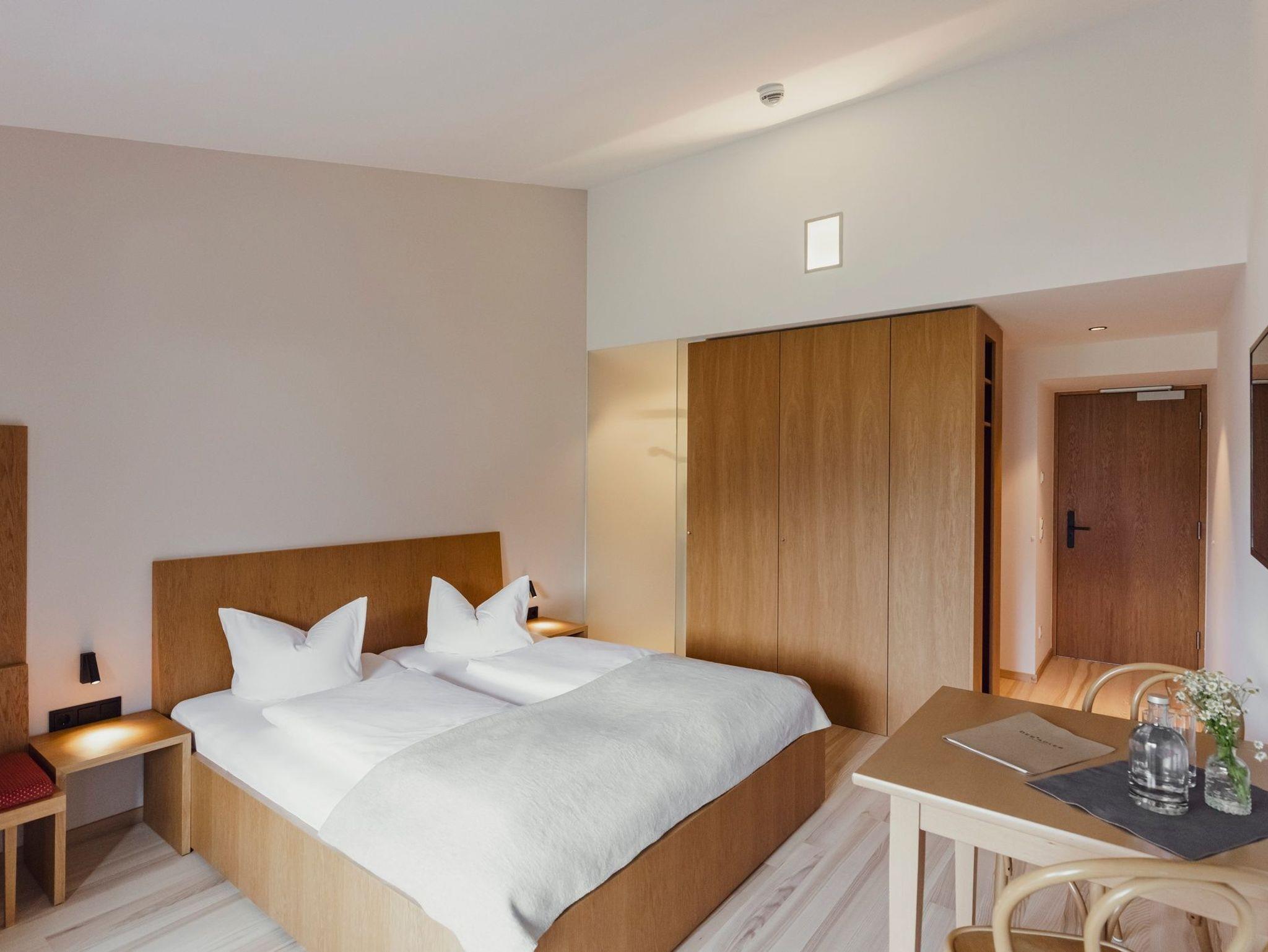 Zwischen 20 m² und 25 m2 großes Doppelzimmer im zeitgenössischen Bregenzerwälderstil. Die Zimmer verfügen über einen Balkon mit herrlichem Ausblick. Badezimmer mit Dusche und WC. Darüber hinaus TV, Safe, Telefon und Wifi.