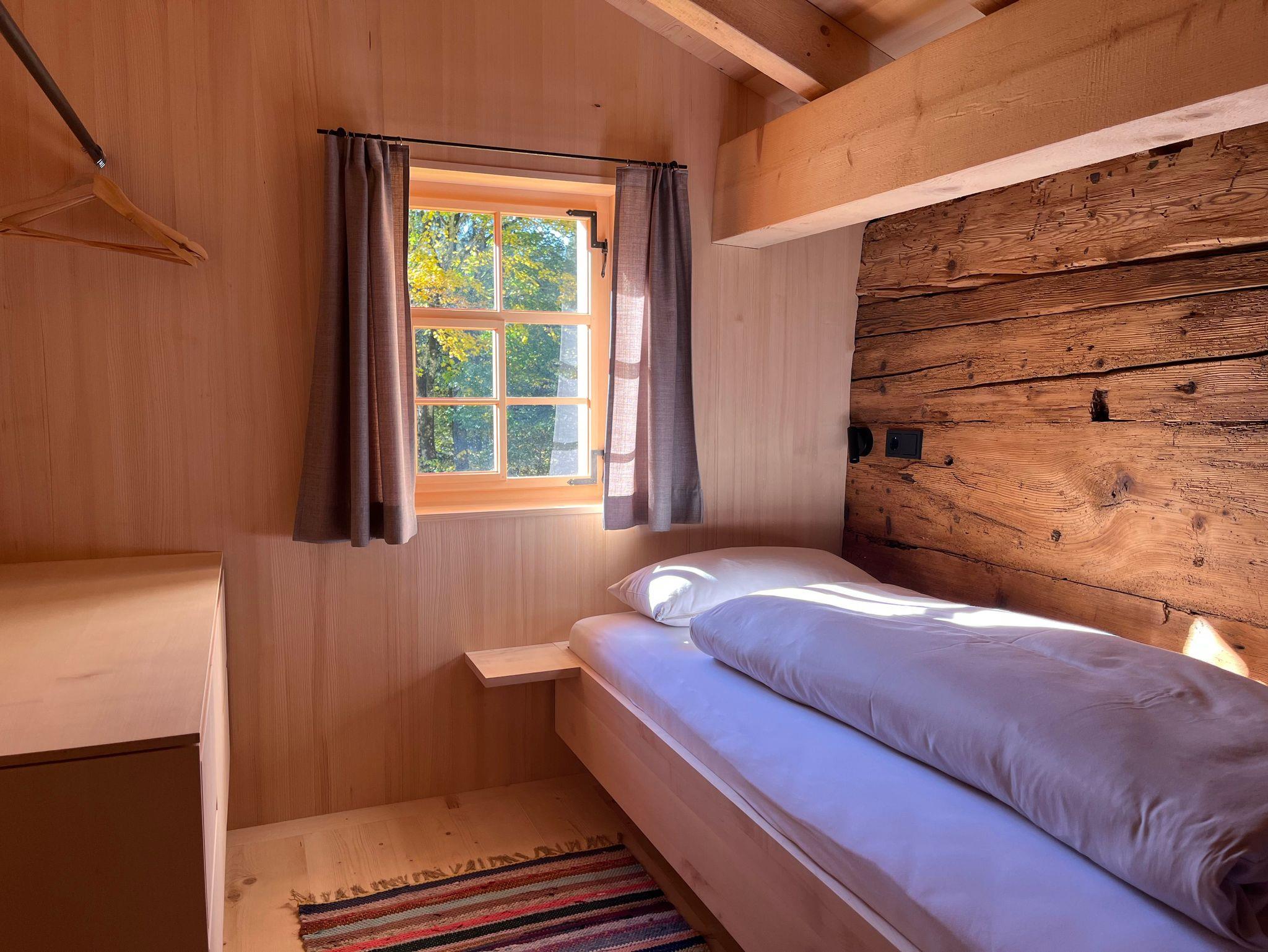 Auf zwei Ebenen befinden sich / eine voll ausgestattete Wohnküche / zwei Schlafzimmer mit Doppelbett / ein Schlafzimmer mit 2 separaten Betten / ein Bad mit WC und Dusche / eine gemütliche Wälder Stube (Wohnzimmer) mit Kachelofen und genügend Holz/ und ein Schopf (offene Veranda)