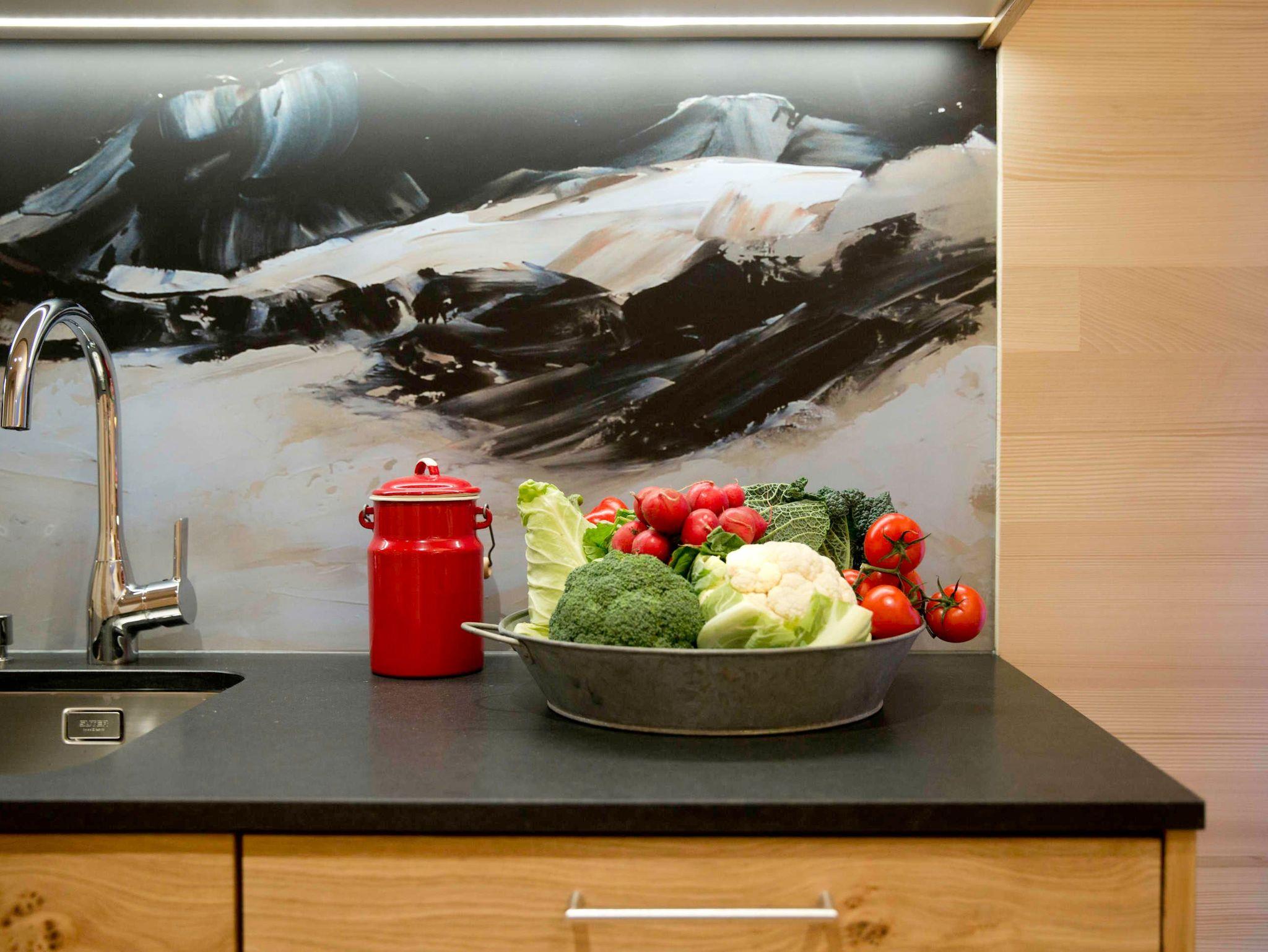 Alle Apartments sind mit hochwertigen Holzböden (Eiche Parkett), Wandvertäfelungen aus heimischer Weißtanne, Decken aus heimischer Weißtanne und Lehmputz ausgestattet.