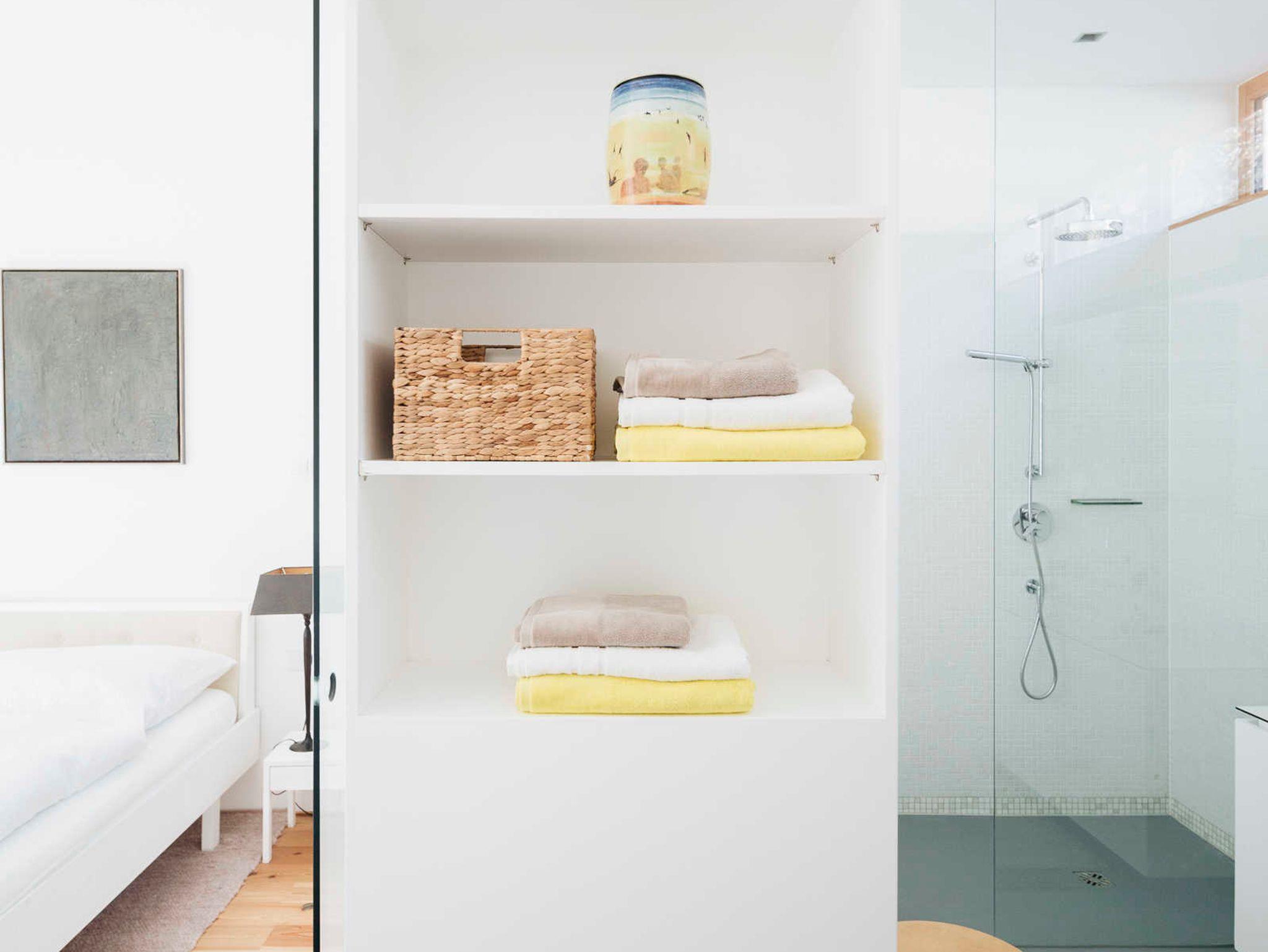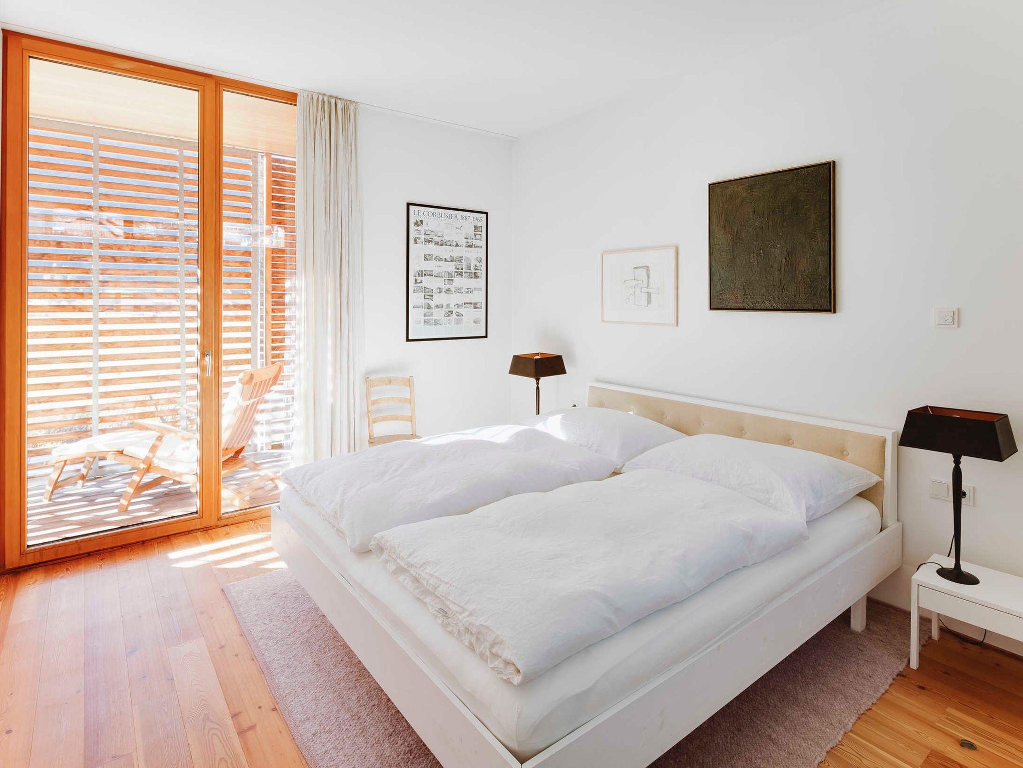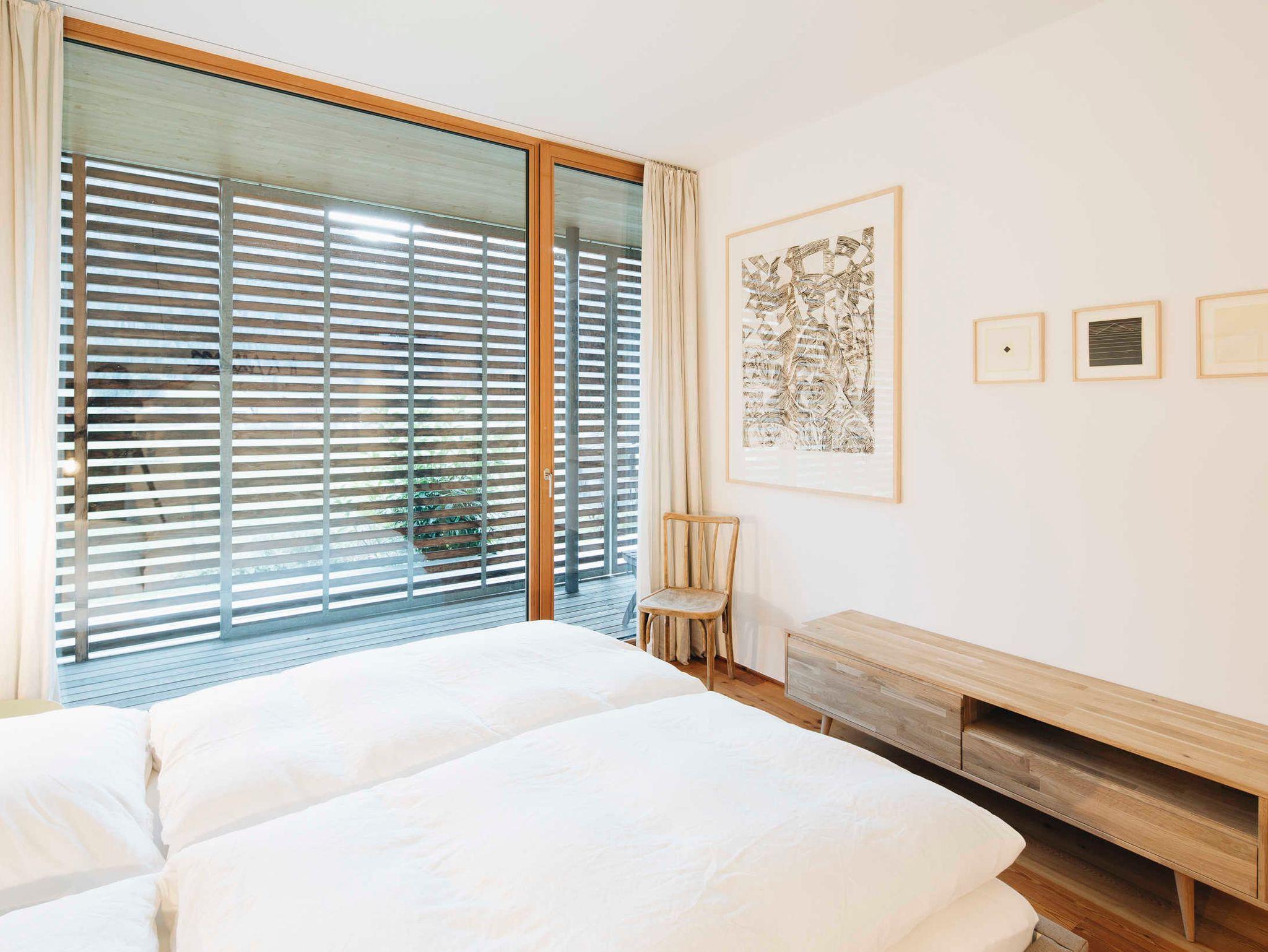 Im Erdgeschoß verfügt das wenefrieda über drei Doppelbettzimmer, eines davon mit einem direkten Zugang zu einem Bad mit Badewanne und Dusche. In diesem Stockwerk gibt es ein zweites Badezimmer (ebenso mit Dusche) und ein weiteres WC. Alle Schlafzimmer verfügen über direkten Zugang zur Veranda. Lichtdurchlässige Holzschiebe-Elemente bieten hier das richtige Maß an Sonnen- und Windschutz.