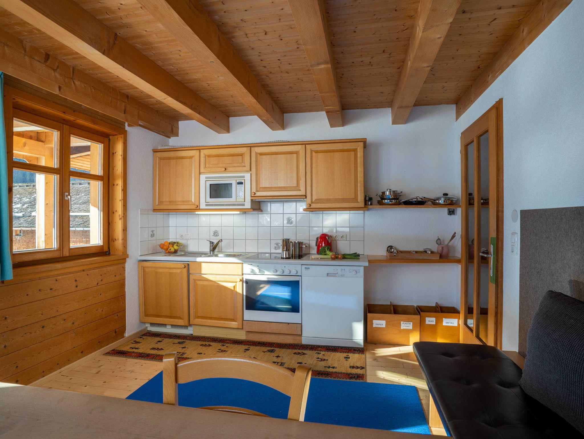 Ein Doppelzimmer, ein 2 - Bettzimmer, ein Badezimmer und eine geräumige Wohnküche hat die Wohnung. Die Küche hat eine Mielespülmachine und einen Mieleherd mit Backrohr. Ein ASDL Anschluß über Lankabel können Sie kostenlos nutzen. Wenn es notwendig ist, können Sie auch einmal in der Woche die Waschmaschine benützen. Ein Telefon mit Durchwahl ist auch in der Wohnung. Dort können Sie auch angerufen werden. Die Matratzen sind sehr gut. Die Böden alle aus Fichtenholz.. Raucher haben auf der Veranda einen tollen Ausblick.