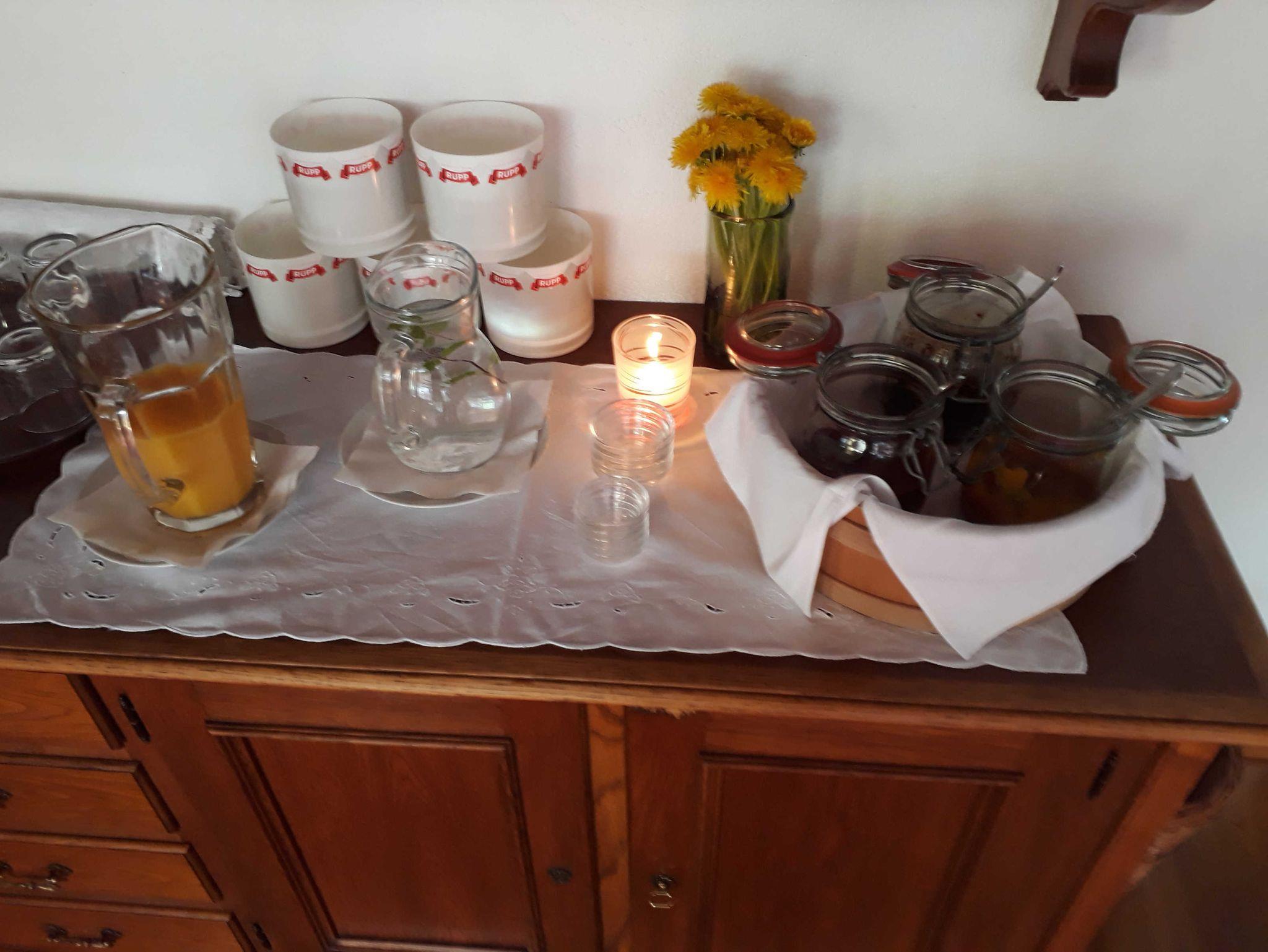 • Das Frühstück ist im Zimmerpreis inkludiert. Die Milch für das Frühstück bzw. bei der Müsli-Ecke erhalten Sie von unseren gehornten Kühen. Diese ist für Allergiker besser geeignet. Das Naturjoghurt ist von der Familie Kohler in Au. Freuen Sie sich auf ein abwechlungsreiches Frühstück im Fernblick.
