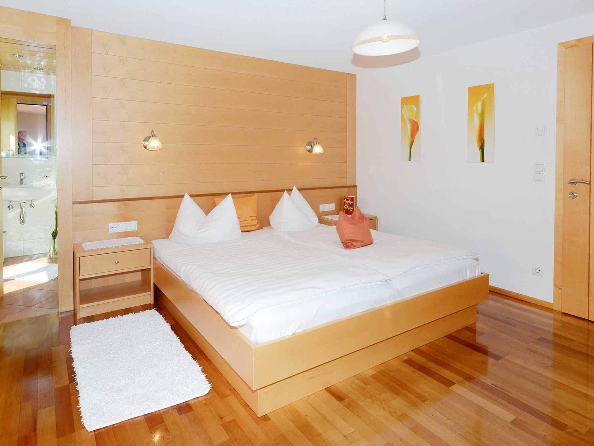 • Im kleinen hellen DZ (gerne auch als EZ) steht ein Doppelbettt mit angebauten Nachtkästchen und in der Mitte wacht ein Engel Ihren Schlaf.