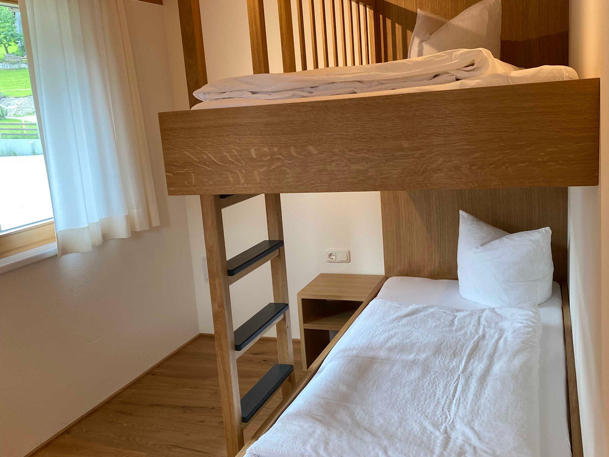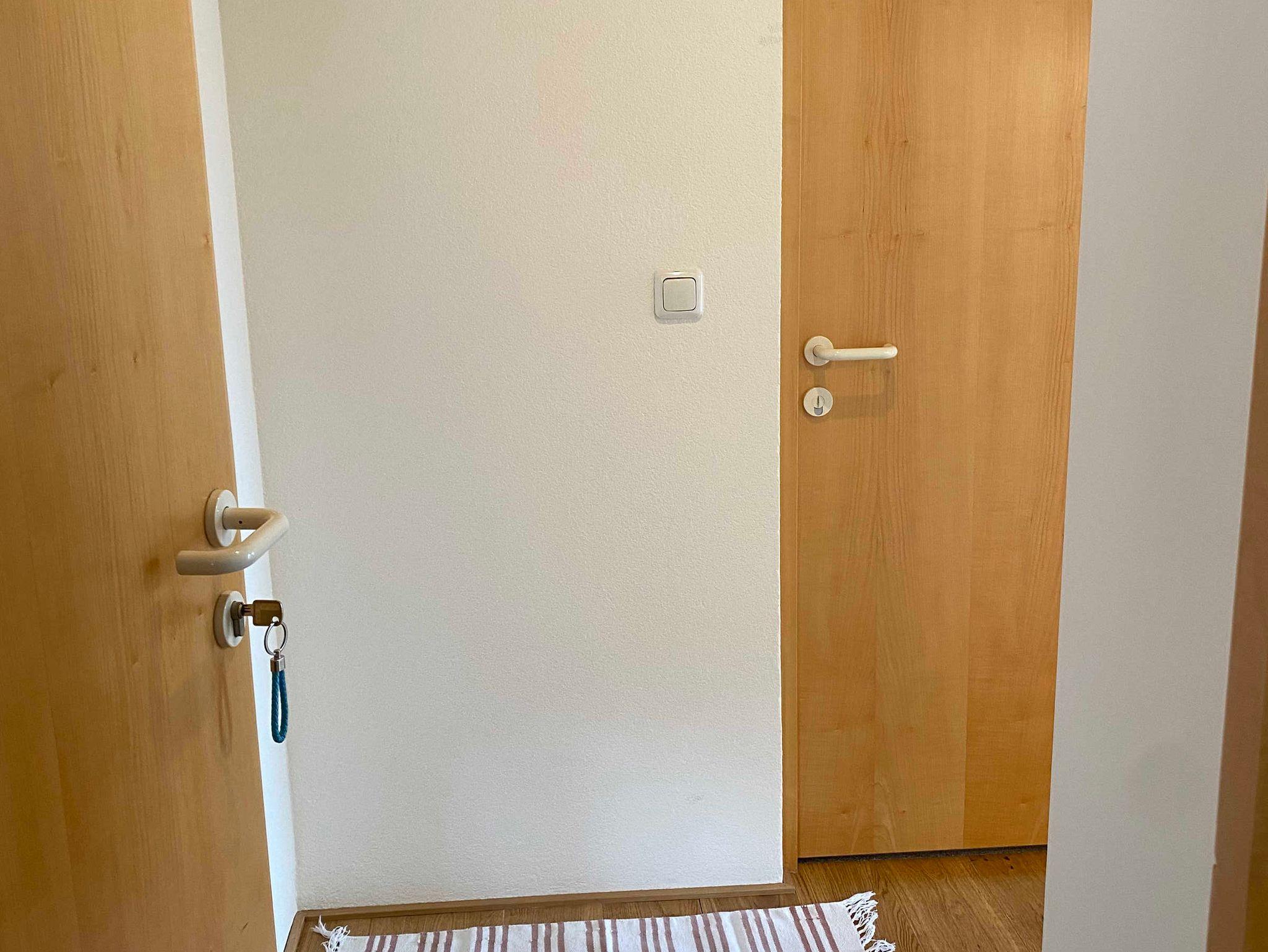 In der komplett neu renovierten (Mai 2022) Ferienwohnung befindet sich eine Garderobe, Doppelzimmer mit Zugang zum Balkon, ein weiteres Schlafzimmer mit Etagenbett, Bad (Dusche/WC) sowie eine gemütliche Wohnküche mit einladender Eckbank.