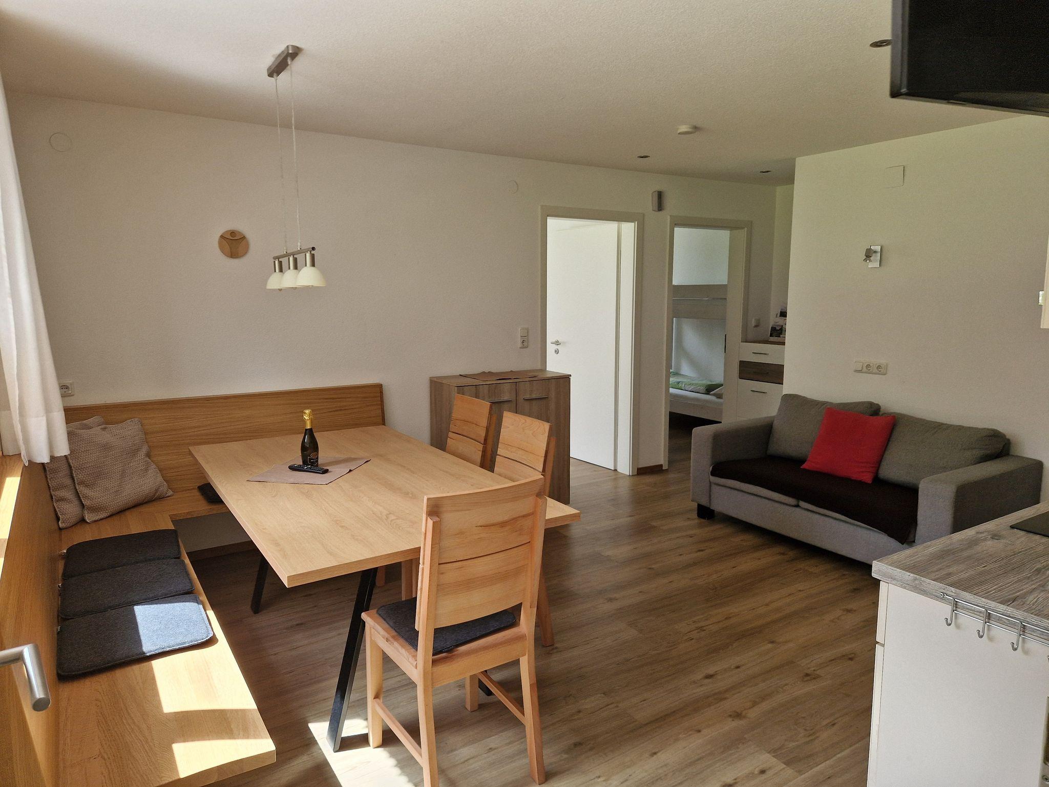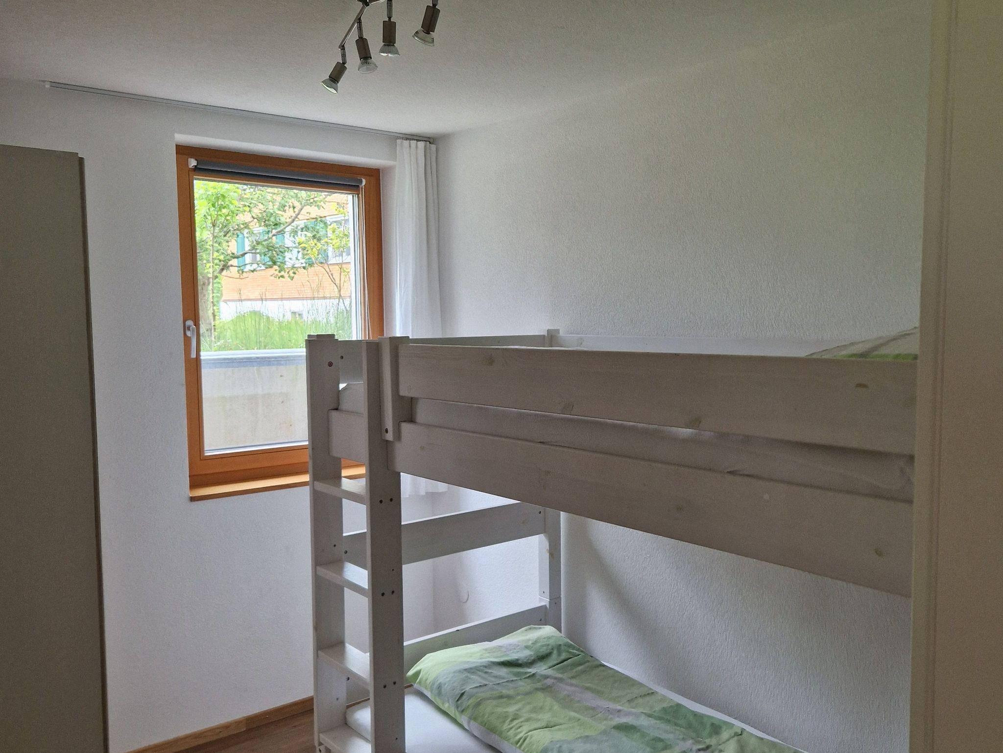 Unsere Wohnung besteht aus einer großen Wohnküche, einem Doppelzimmer, ein Zimmer für 2 Personen und ein Zimmer mit Stockbett.