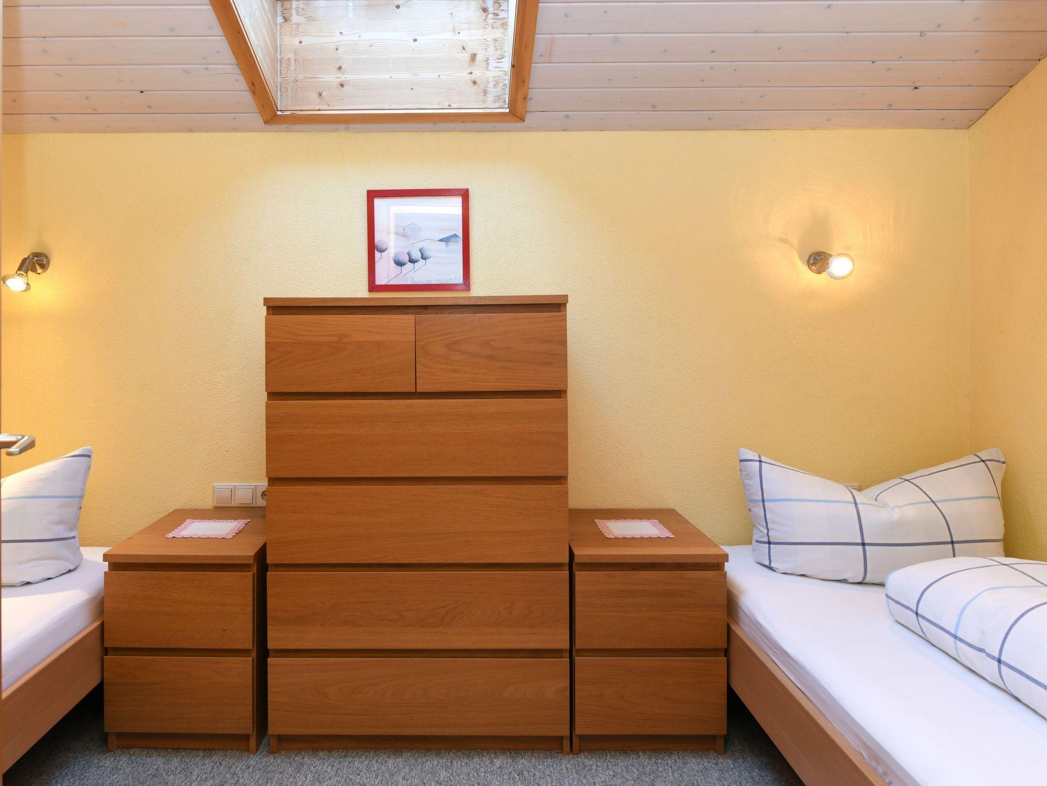 Geräumige Ferienwohnung mit einer komplett ausgestatteten Wohnküche, einem Doppelzimmer, einem Zweibettzimmer und Dusche/WC.
