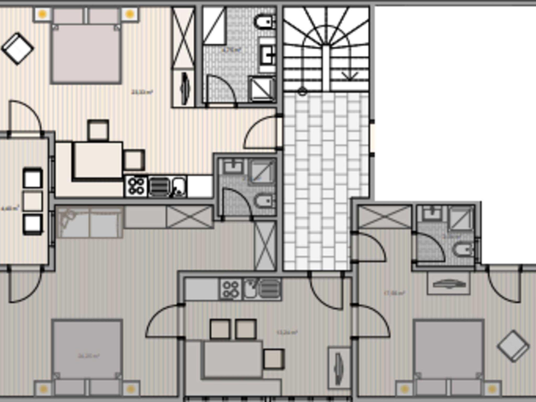 Großzügige Ferienwohnung mit separater Küche und 2 Doppelzimmern. Beide Schlafzimmer sind mit separater Dusche und WC ausgestattet. Auf Anfrage auch für 6 Personen möglich!