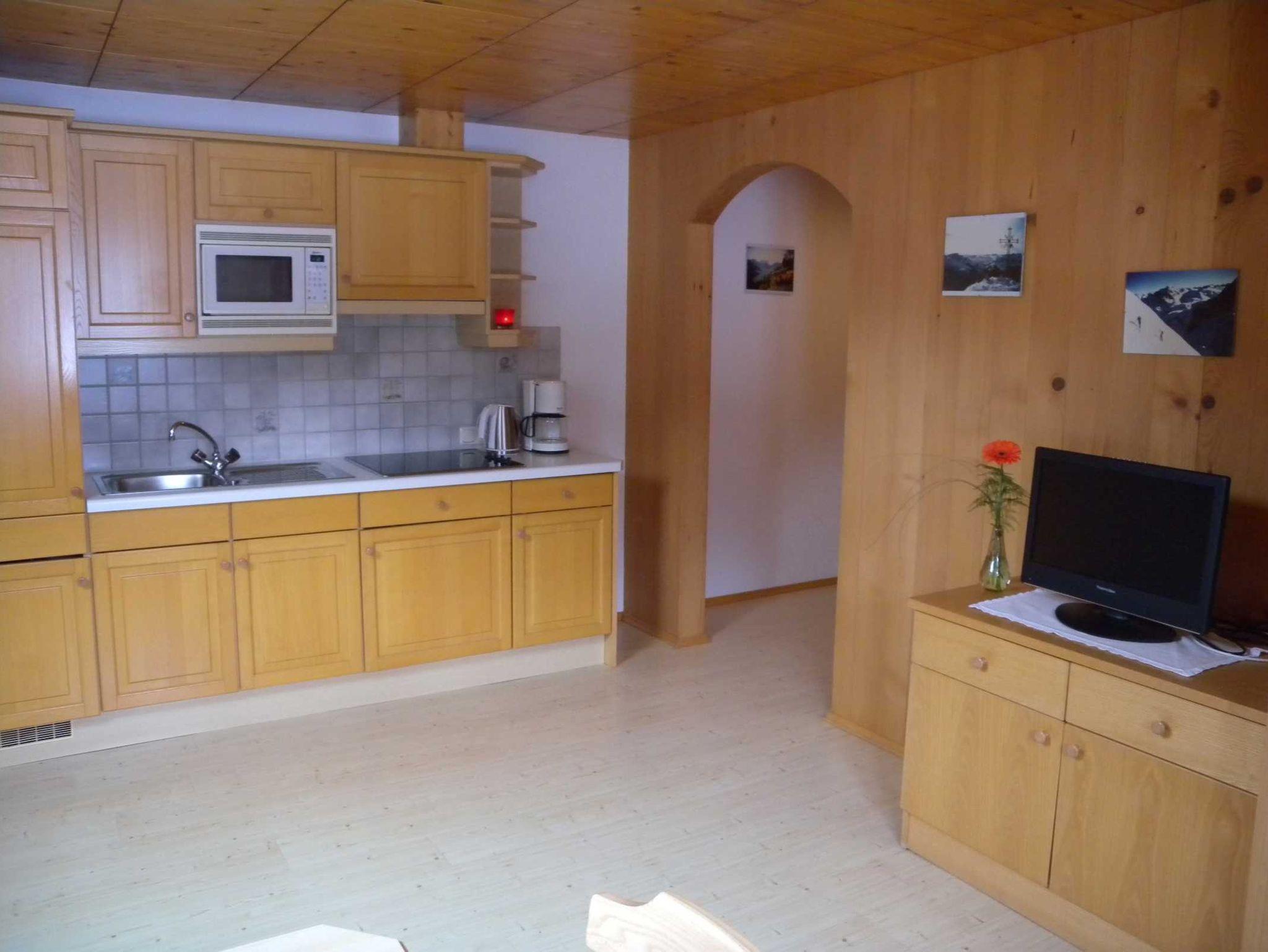 Zur Wohnung gehört ein eigenes Schlafzimmer mit Doppelbett, eine voll ausgestattete Wohn-Ess-Küche sowie Bad mit Dusche und WC. Bei Bedarf ist genug Platz für eine Ausziehcouch, ein Zusatzbett sowie für ein Gitterbett.