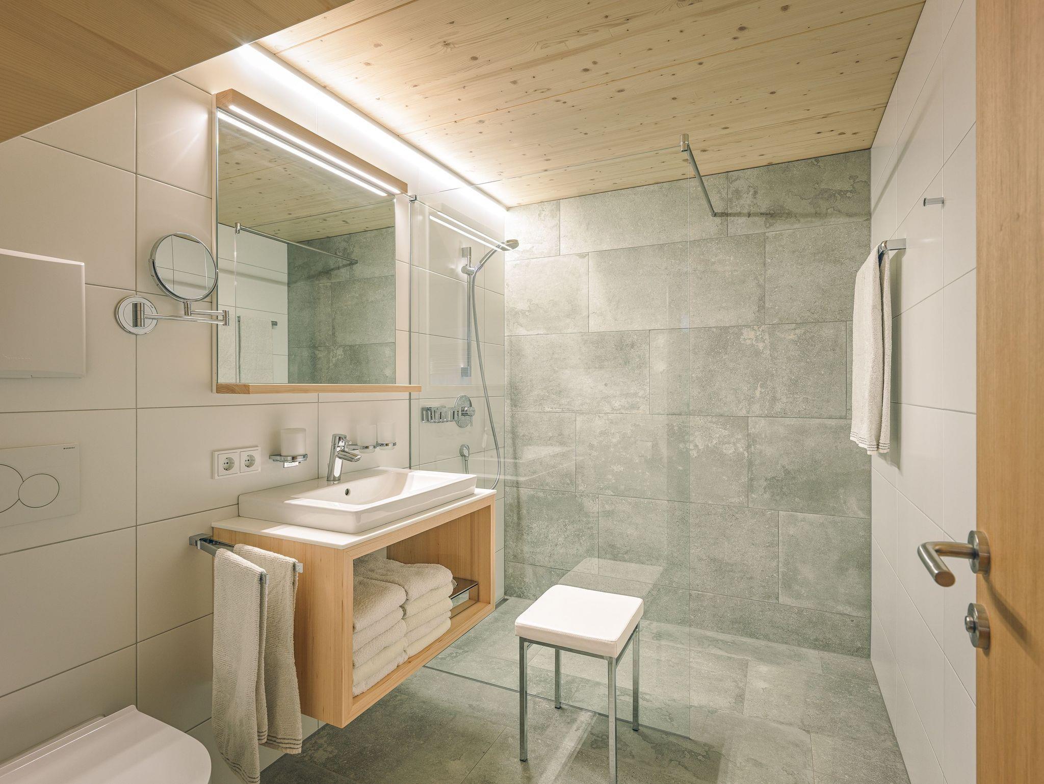 Gefertigt von heimischen Handwerkern, überzeugen die Möbel und die geölten Eichenparkettböden durch ihre Qualität. Fußbodenheizung und viel Holz schaffen eine besonders heimelige Atmosphäre.