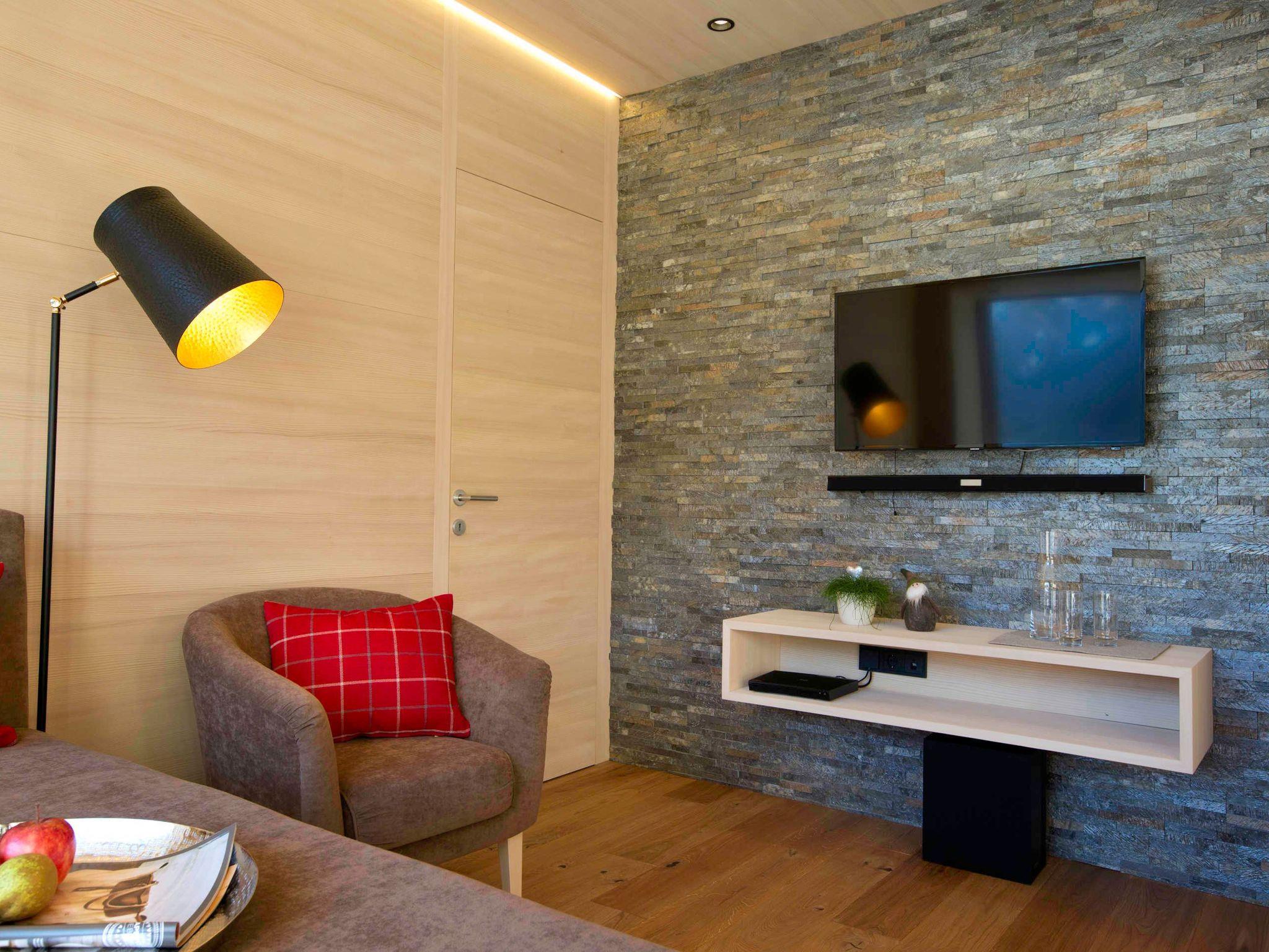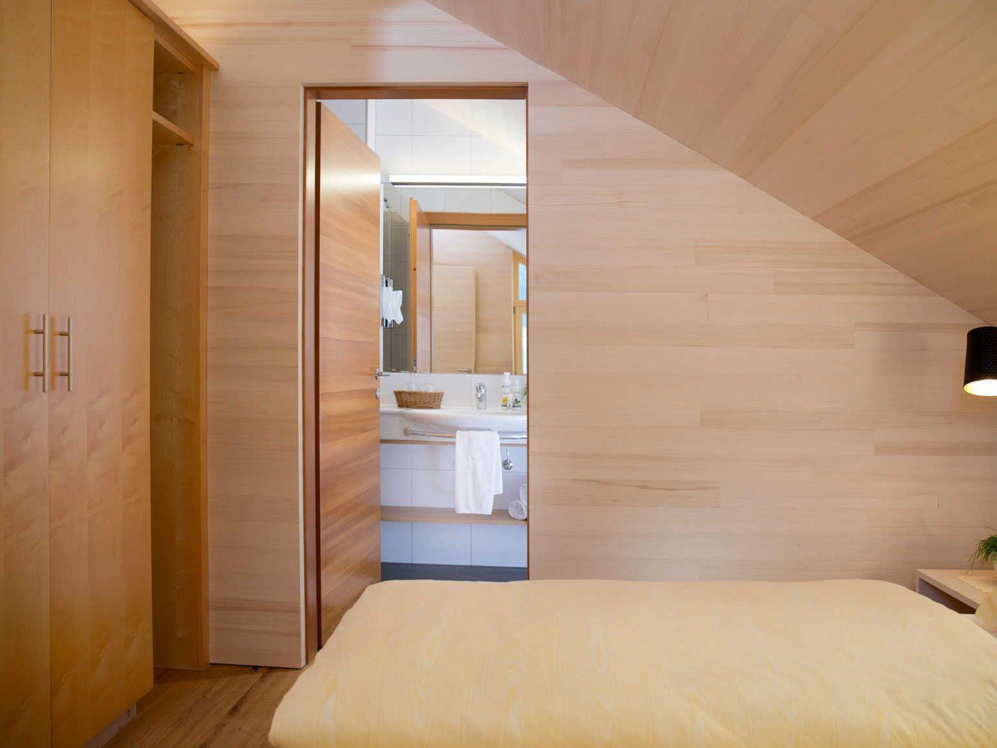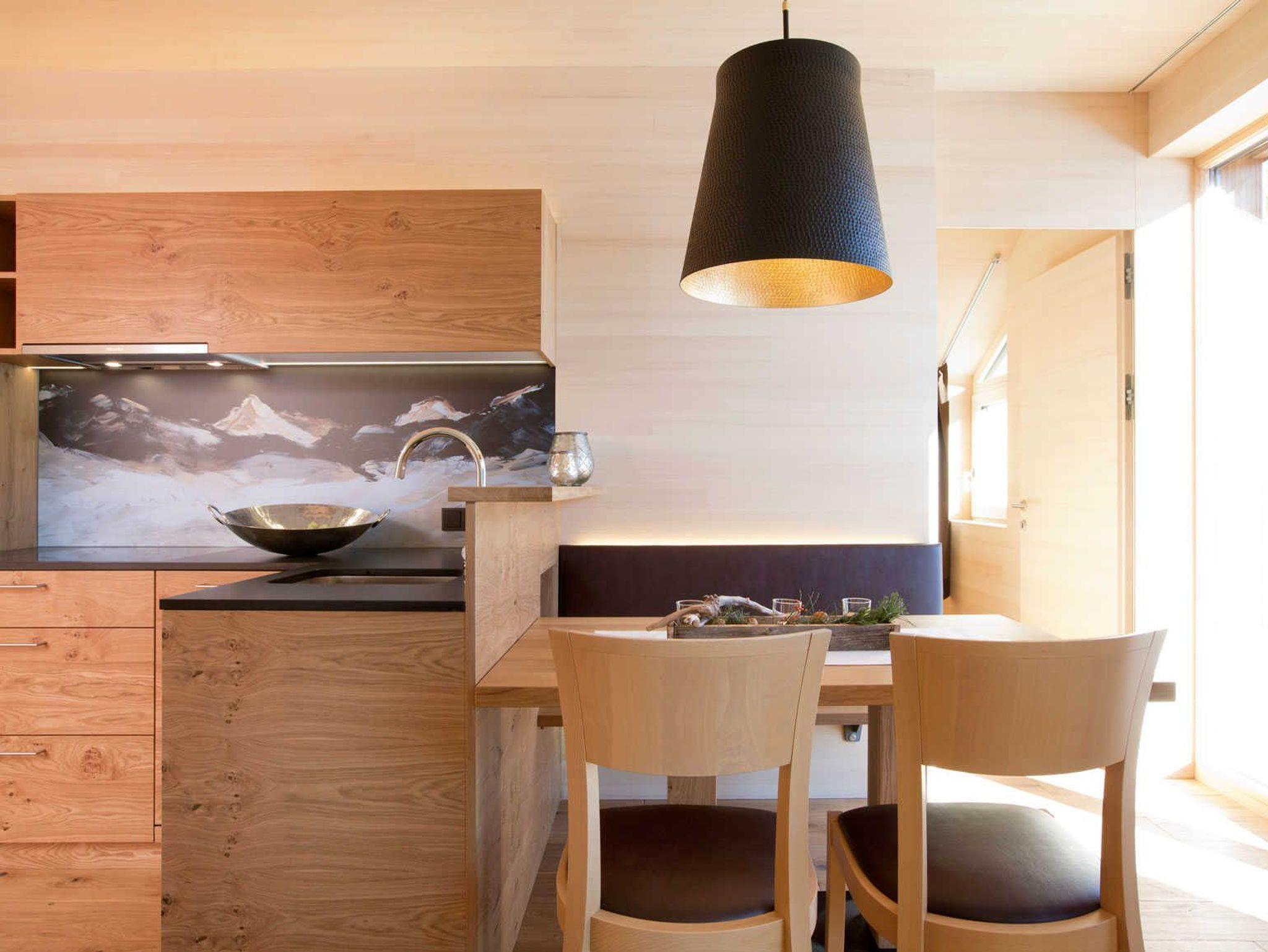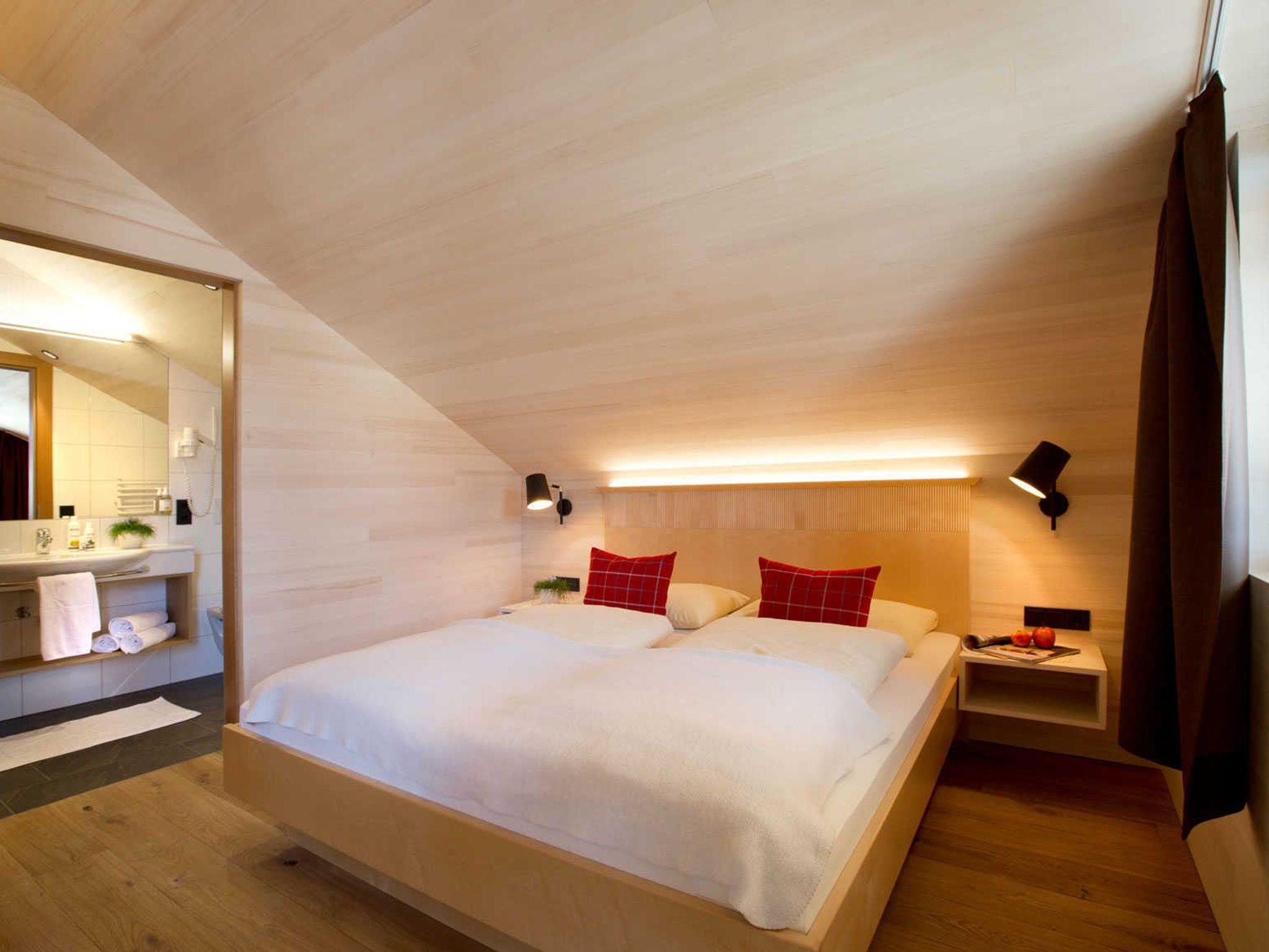 Alle Apartments sind mit hochwertigen Holzböden (Eiche Parkett), Wandvertäfelungen aus heimischer Weißtanne, Decken aus heimischer Weißtanne und Lehmputz ausgestattet.