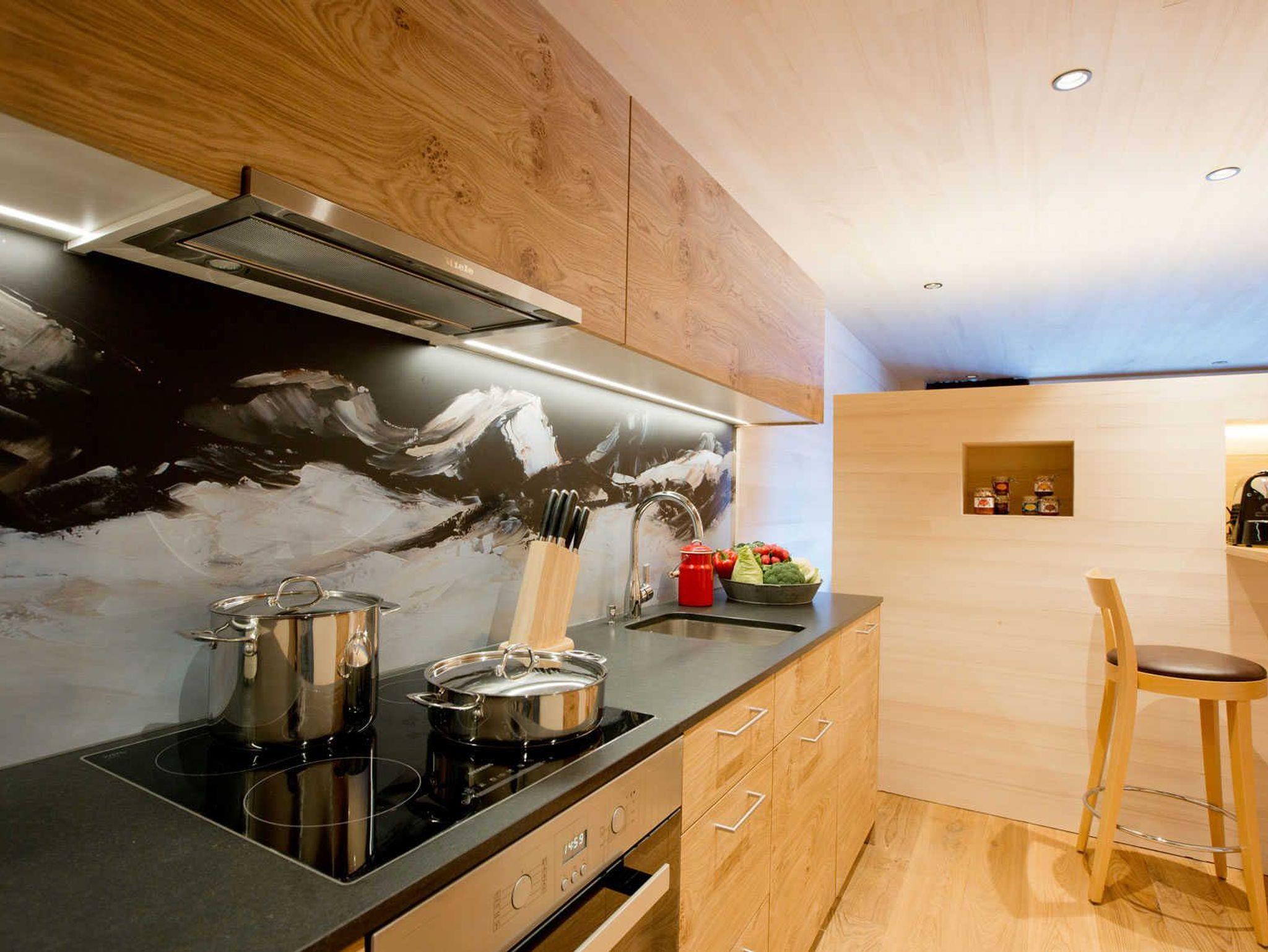 > Top ausgestattete Küche mit Cerankochfeld, Backofen, Geschirrspüler, Kühlschrank mit Gefrierfach; Nespresso-Kapselmaschine, Filterkaffeemaschine, Toaster, Wasserkocher, Mixer