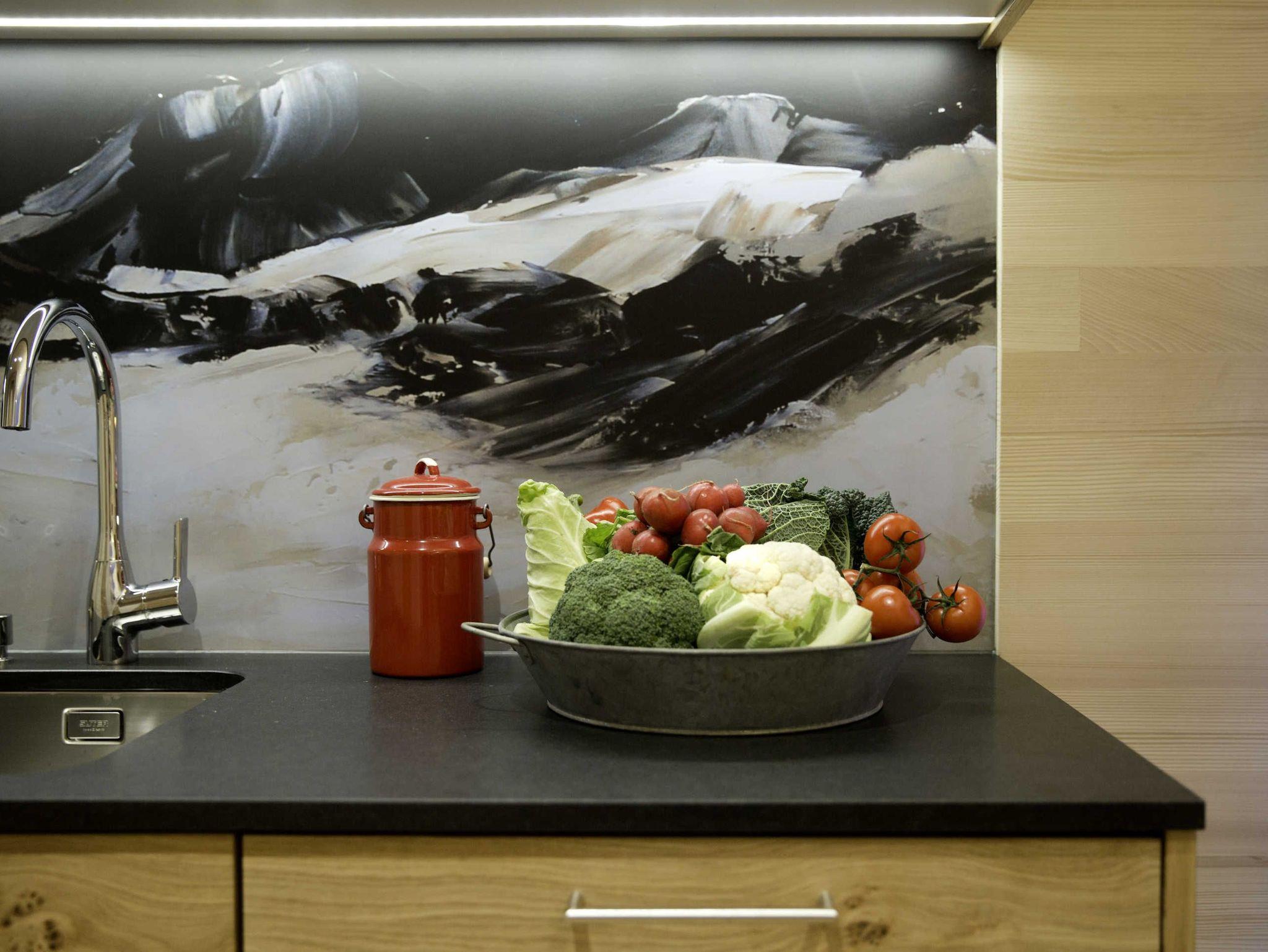 • Die großen Panoramafenster mit Wohlfühlcouch 190 x 190 cm (in Apartment 2, 3, 4, 5, 7, 8) ermöglichen einen unvergleichlichen Ausblick …