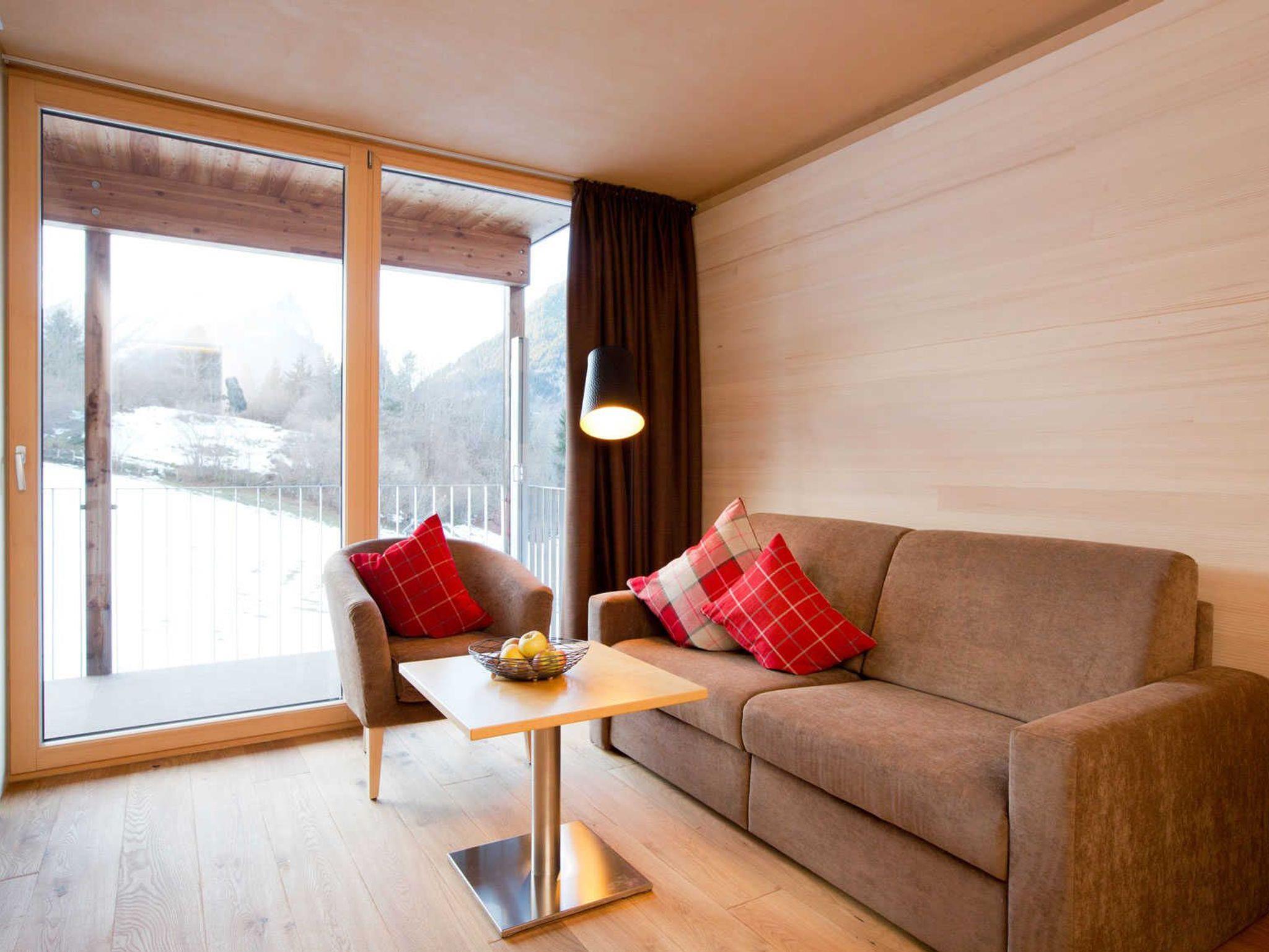 • Die großen Panoramafenster mit Wohlfühlcouch 190 x 190 cm (in Apartment 2, 3, 4, 5, 7, 8) ermöglichen einen unvergleichlichen Ausblick …