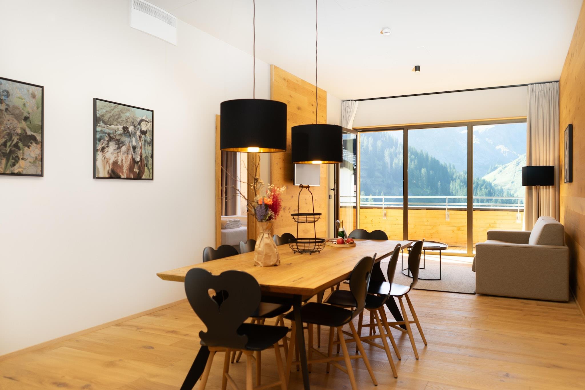 En højkvalitets, moderne indrettet lejlighed med masser af naturligt træ og natursten venter på dig i Schröcken - et solrigt højplateau midt i Bregenzerwalds bjerge. Om vinteren er der 88 lifte og omkring 305 kilometer pister med garanteret sne. Den gratis skibus tager dig til Salober-Jet på kun 5 minutter - din adgang til "Ski Arlberg"-området og dermed til det største skiområde i Østrig. Men der er også meget at opleve uden for pisterne: hvide vinterlandskaber og et fantastisk bjergpanorama danner den ideelle kulisse for solrige vinterture, sjove kælkespil, maleriske sneskovandringer eller varierede langrendsture i en fantastisk vinterkulisse Ferieregionen Warth-Schröcken og Bregenzerwald byder også på et væld af udflugtsmål og sportsoplevelser for familier og aktive feriegæster om sommeren. Fra klassiske vandreture i Arlbergs majestætiske bjerge til adskillige mountainbikeruter og hurtige nedstigninger med Flying Fox. En alpin oase af afslapning; et sted, hvor du kan opleve, nyde og opdage "bjerglivsstilen" i alle dens facetter.