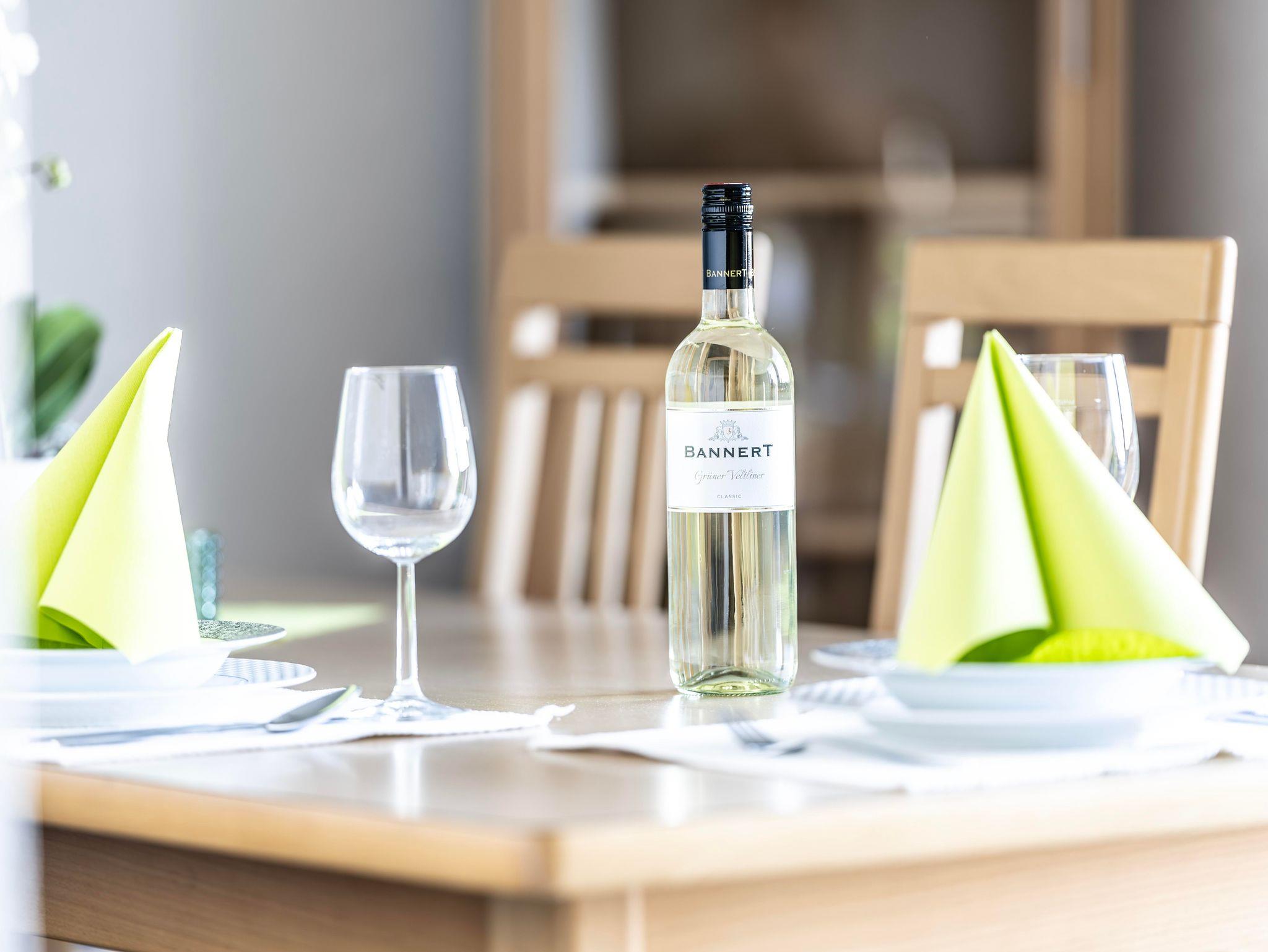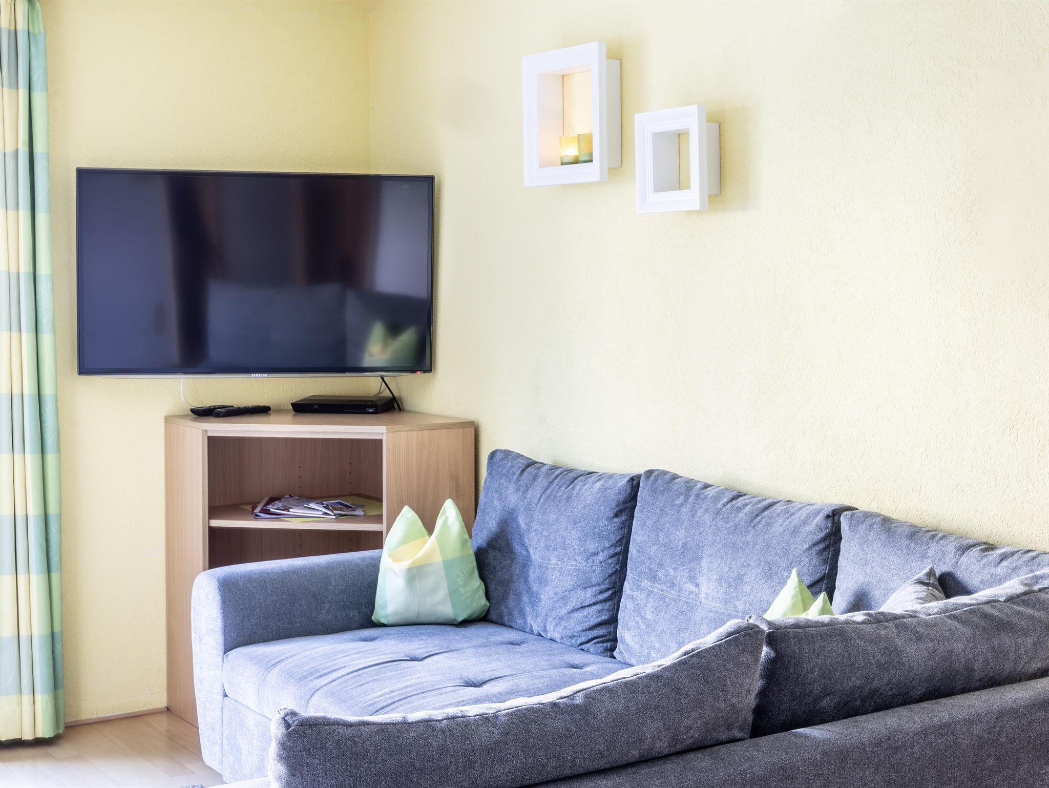 und ein separates WC, große Wohnküche mit Couchlandschaft, Spülmaschine und Mikrowelle, Filtercafemaschine, Senseo und Wasserkocher, Zimmersafe, Radio mit CD und Sat-TV mit DVD Player.