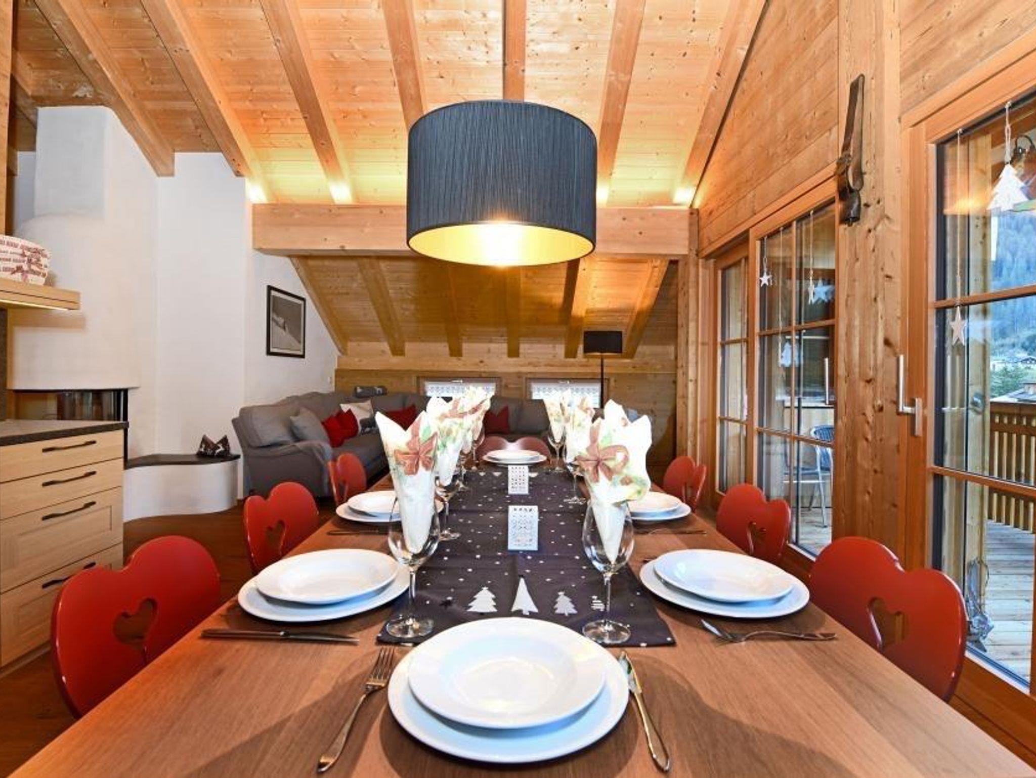 121 m² erstklassiger Wohnkomfort für 6 bis 10 Personen in der obersten Etage. Das mit viel Liebe zum Detail gestaltete Appartement mit „Hüttengefühl“ hat Holzböden und -wände aus massiver Eiche.