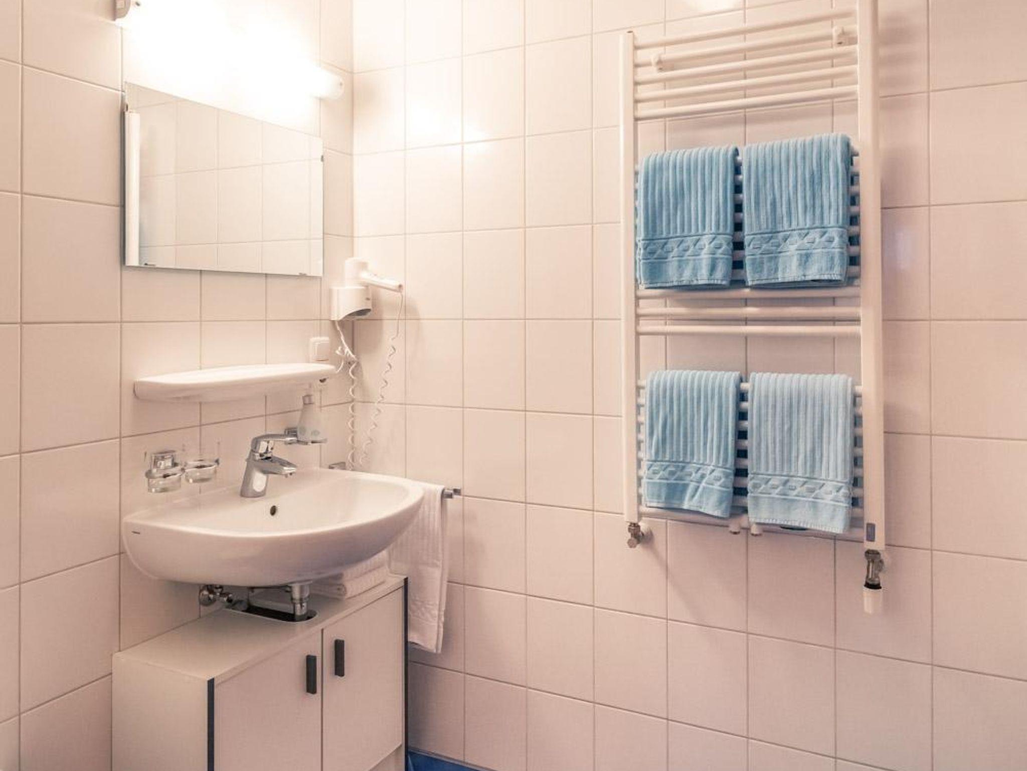 Große Ferienwohnung mit 4 getrennten Schlafzimmer - 3x Doppelzimmer und 1x Zweibettzimmer, 2x Dusche/WC (jeweils ein Haarfön vorhanden), separates WC. Ebenerdiges Appartment mit Terrasse (zugänglich Küche, sowie von 2 Schlafzimmer)