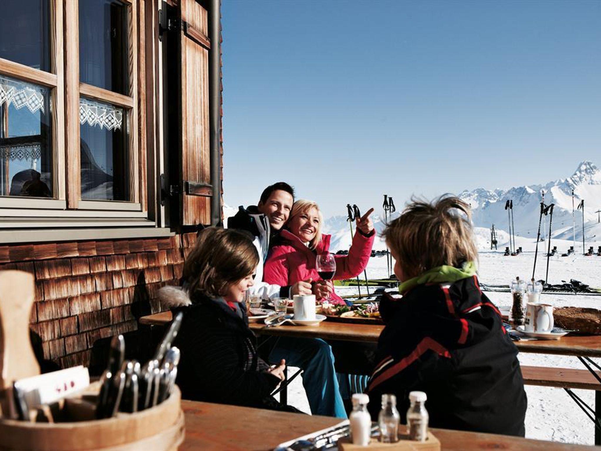 Schräg gegenüber befindet sich die Skibushaltestelle, von wo aus Sie bequem in 5 Minuten das Skigebiet Warth-Schröcken erreichen. Die Skibusse fahren im 15-Minuten Takt. Der Einstieg ins Skigebiet Ski Arlberg ist beim Salober. Dort befindet sich an der Talstation auch die Skischule mit der PAULI SKIARENA, der Sportshop mit Skiverleih sowie Restaurants mit großen Sonnenterrassen
